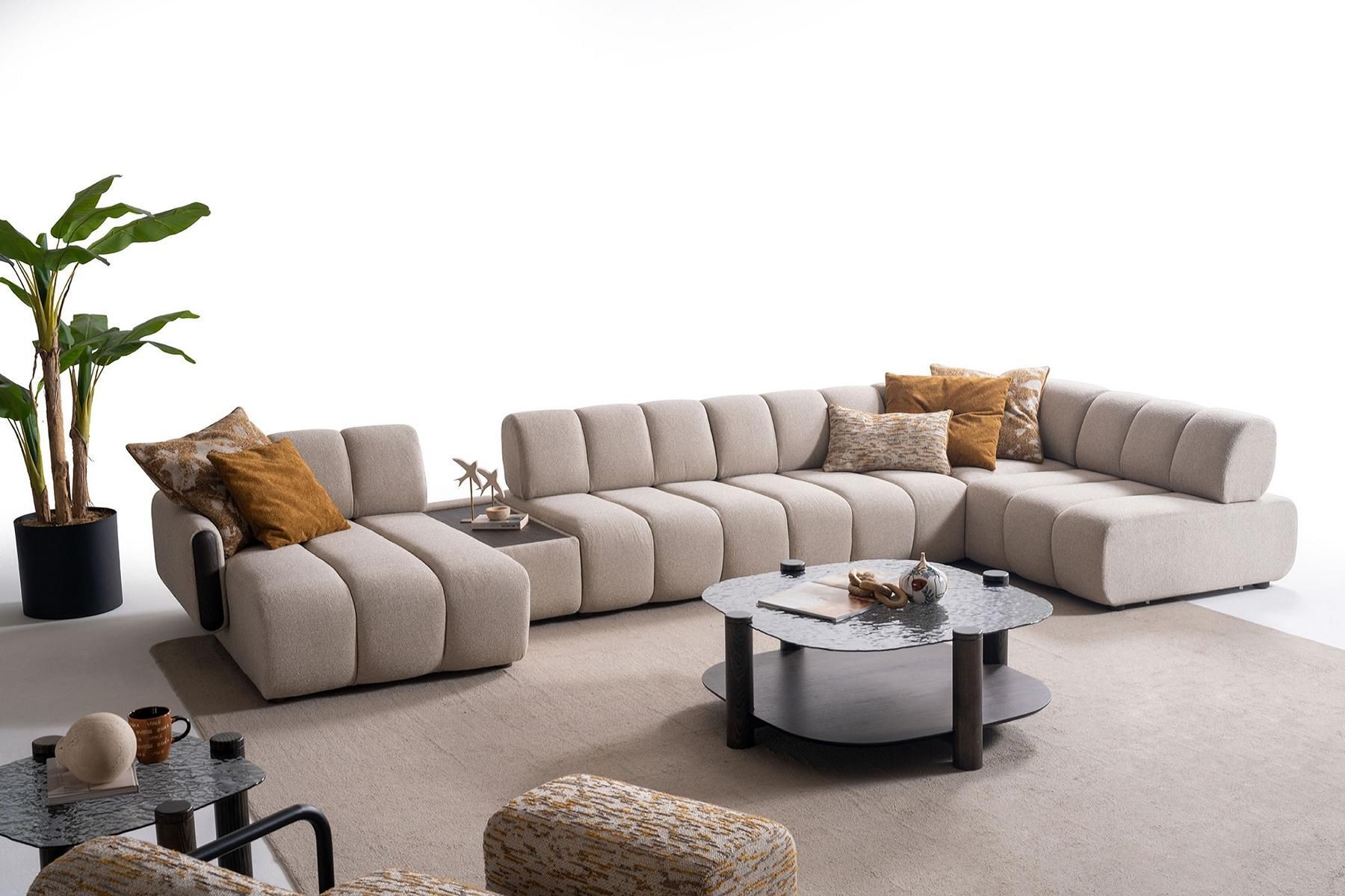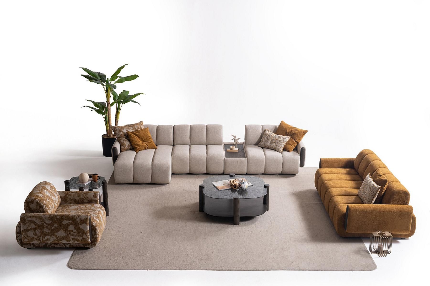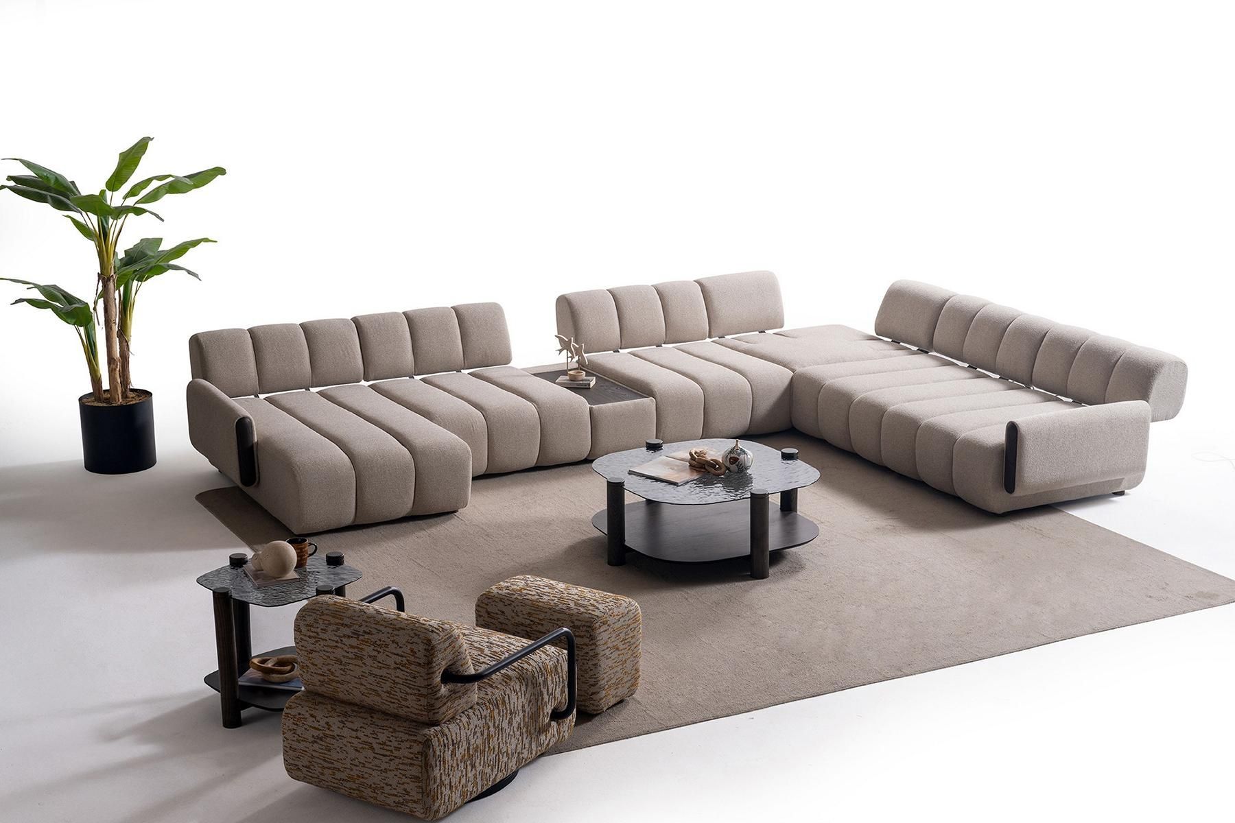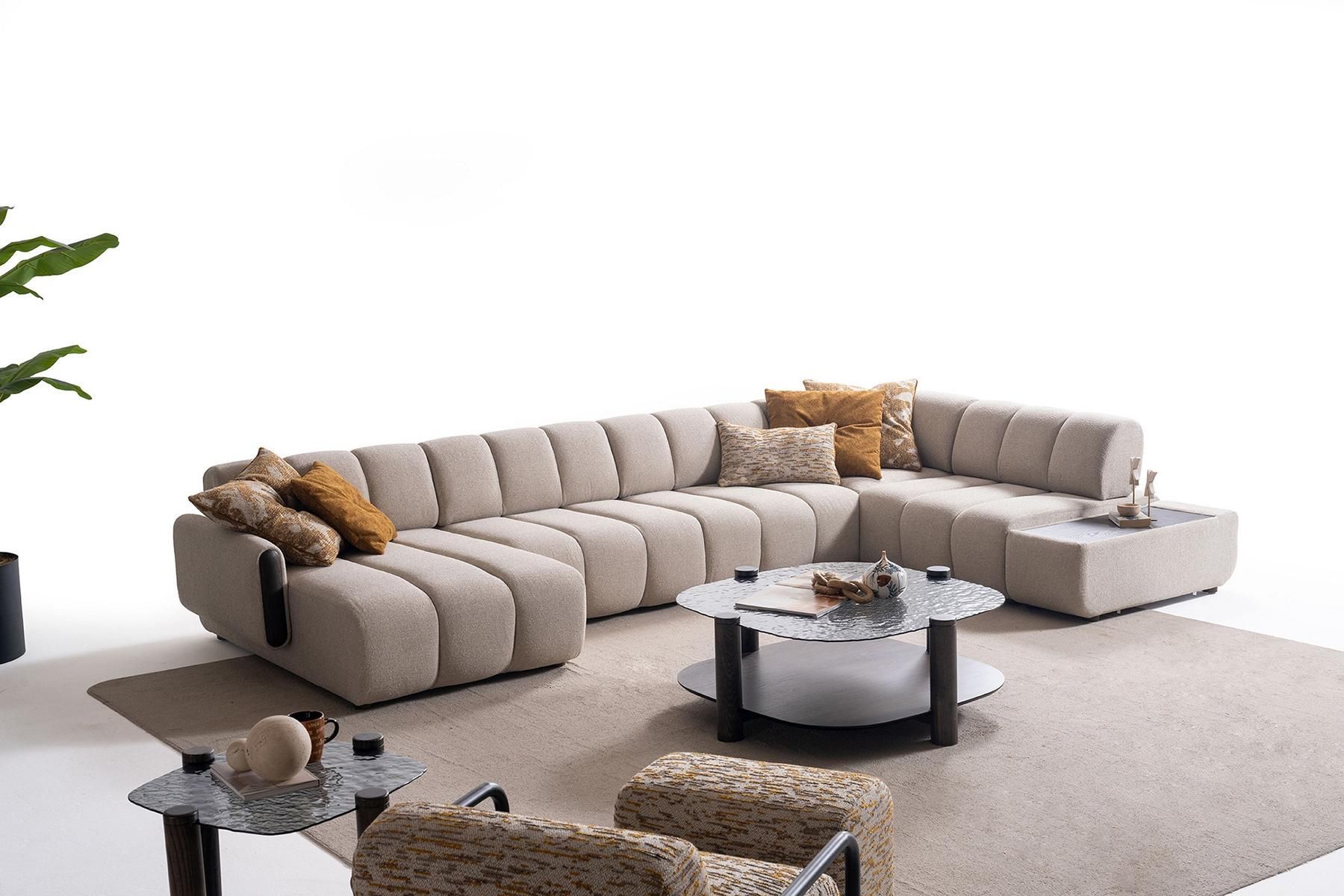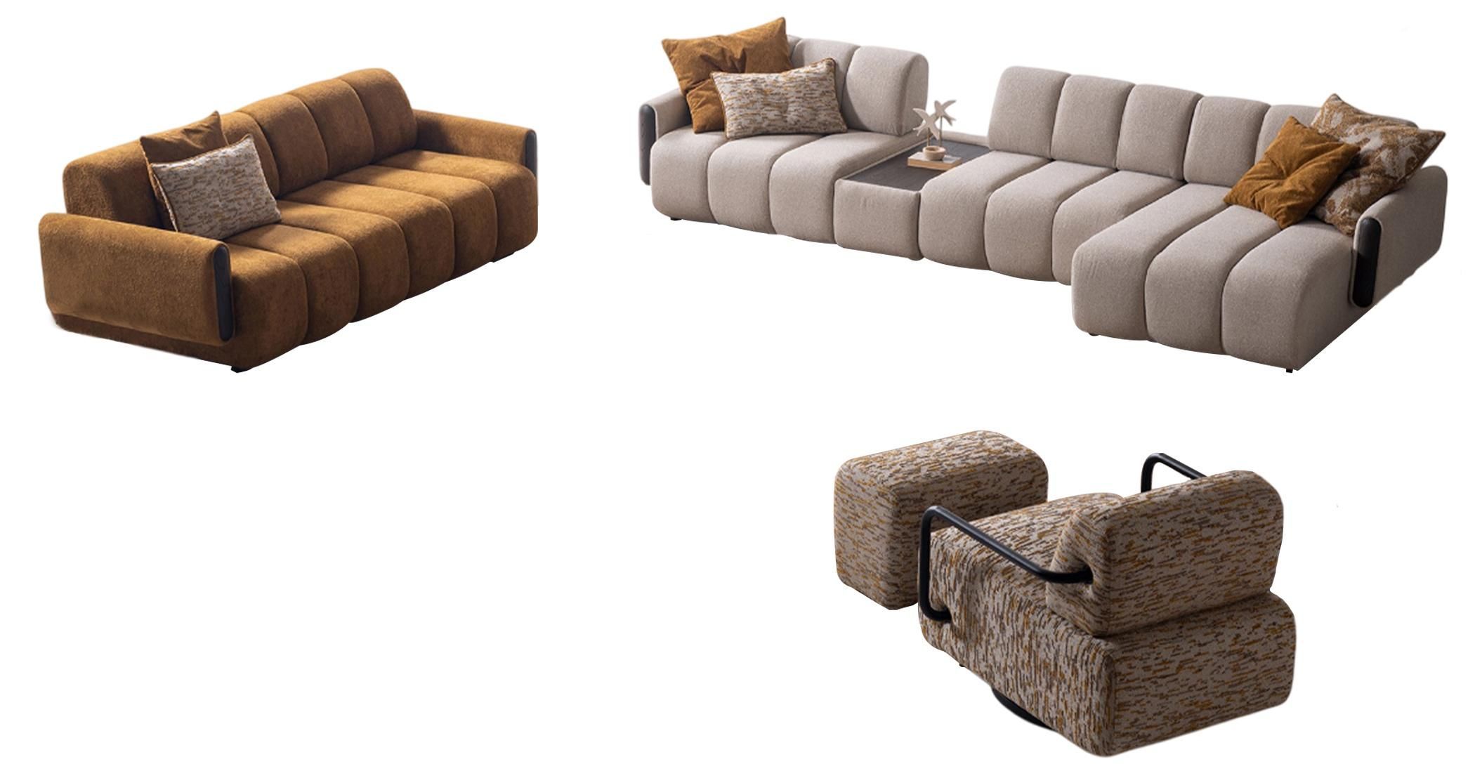 Stilvolle Wohnzimmer Sitzgarnitur Polster L-Form Couch Hocker Sessel