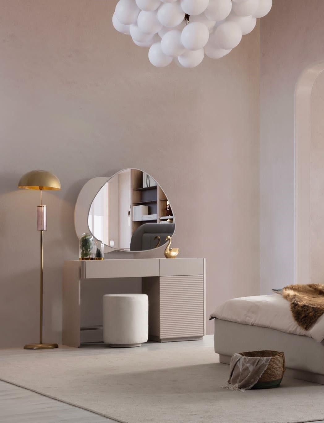 Stilvoller Beiger Schminktisch Luxuriöser Kosmetiktisch Edle Holz Möbel