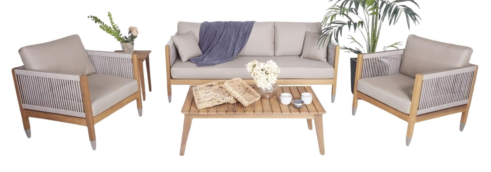 Stilvoller Gartenmöbel Set 4Tlg 3 + 1 + 1 Sitzer Holz Couchtisch Terrassenmöbel