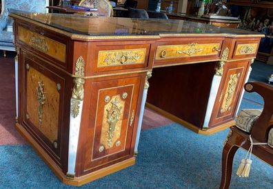 • Casa Padrino Luxus Barock Schreibtisch Hellbraun / Dunkelbraun / Rot - Handgefertigte