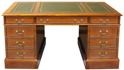 • Casa Padrino Luxus Barock Schreibtisch Dunkelbraun / Hellbraun / Grün - Handgefertigt