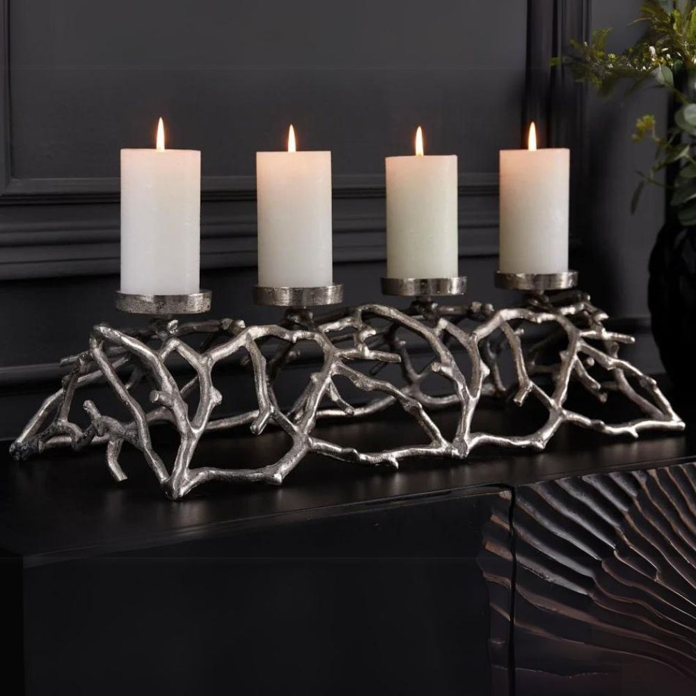 Stilvoller Kerzenständer Candela 60cm silber Aluminium Kerzenhalter