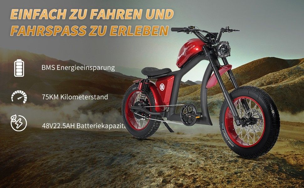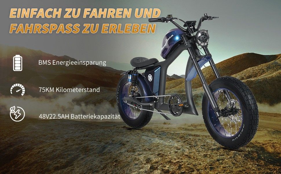Der 1000W-Motor zieht gut an, die 48V-Batterie schafft real 65–70 km. Alurahmen leicht, Federung komfortabel. Ölscheibenbremsen greifen zuverlässig, Licht ist hell. Einzige Mängel: Sattel zu hart, Ladegerät wird warm. EEC-Papiere dabei – Anmeldung einfach. Für den Preis eine klare Empfehlung.