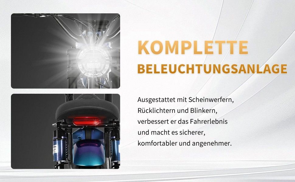 Nutze den Roller täglich für den Arbeitsweg (15 km). Der 1000W-Motor zieht gut, die 48V-Batterie schafft real 65-70 km – völlig ausreichend. Alurahmen + Federung machen Fahrten über Kopfsteinpflaster angenehm. Bremsen greifen zuverlässig, Licht ist hell (auch nachts). Einziges Manko: Sattel wird nach 30 min etwas hart, und das Ladegerät wird warm. EEC-Papiere dabei – Anmeldung problemlos. Klare Kaufempfehlung für Pendler, die Style und Praxis suchen.