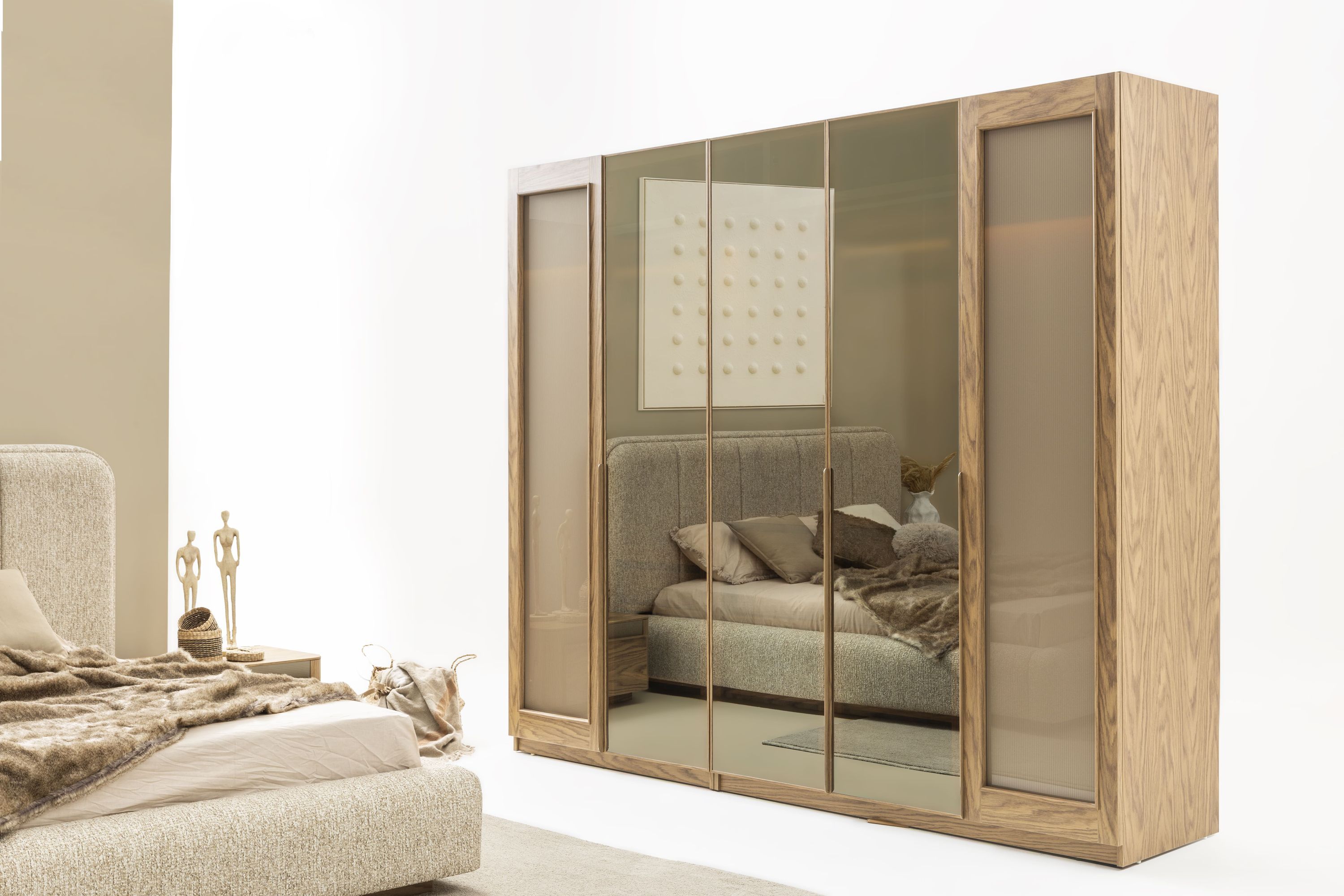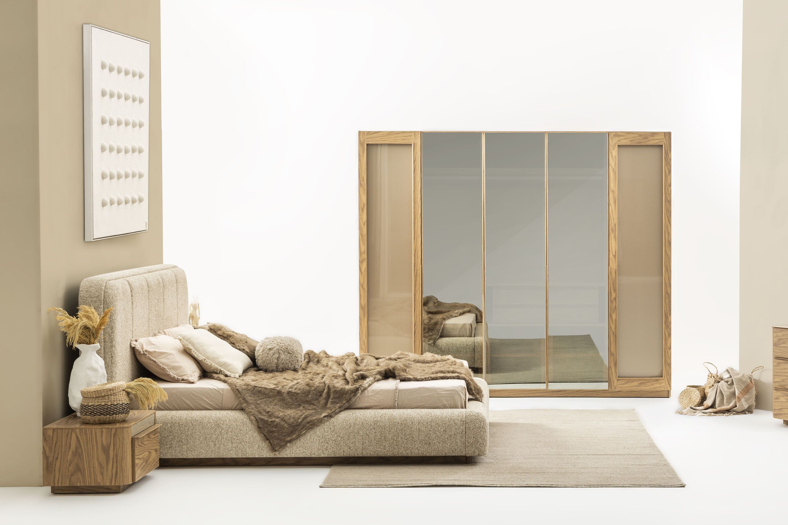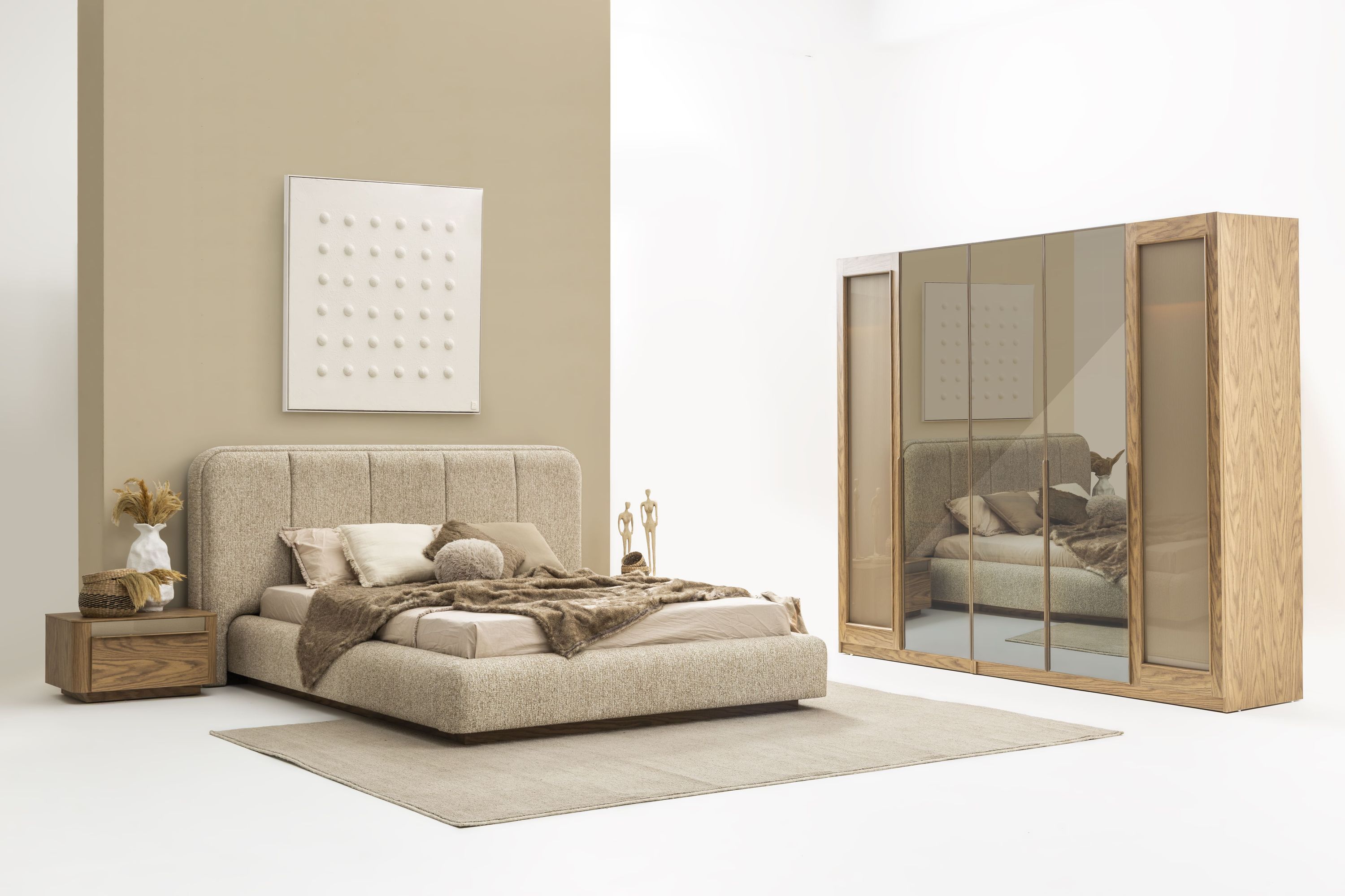 Stilvolles Schlafzimmer-Set: Bett, Nachttische & Schrank in Beige