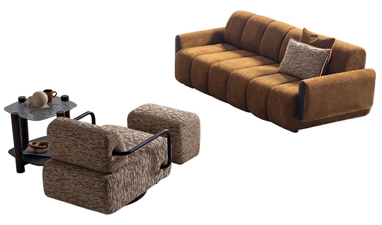 Stilvolles Sofa-Set Designer Dreisitzer Hocker Relaxsessel Tisch