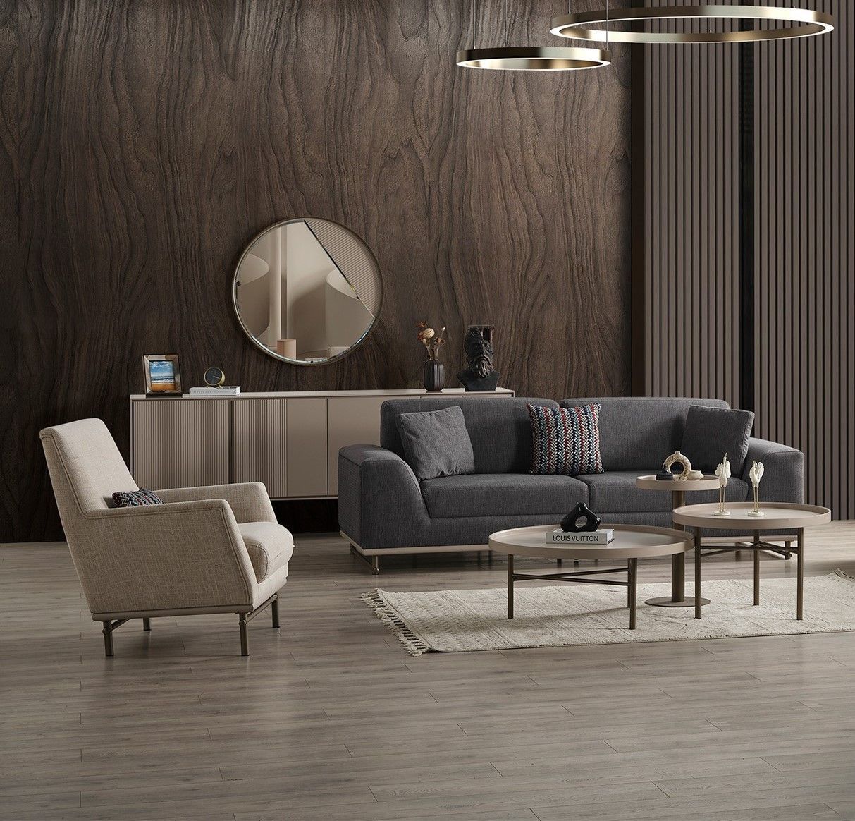Stilvolles Wohnzimmer Möbel Set Luxuriöser 3-Sitzer Couchtisch -7tlg