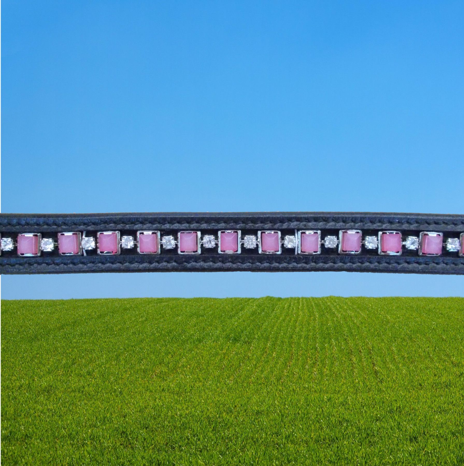 Stirnband, mit rosa und weißen Strasssteinen, Stirnriemen rosa Strass, schwarz