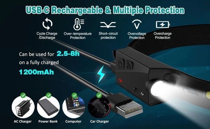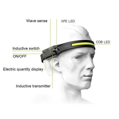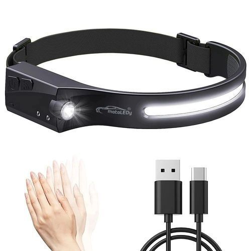Stirnlampe - COB + LED, Bewegungssensor, leistungsstarker Akku 2x 8h Betri Off-Road