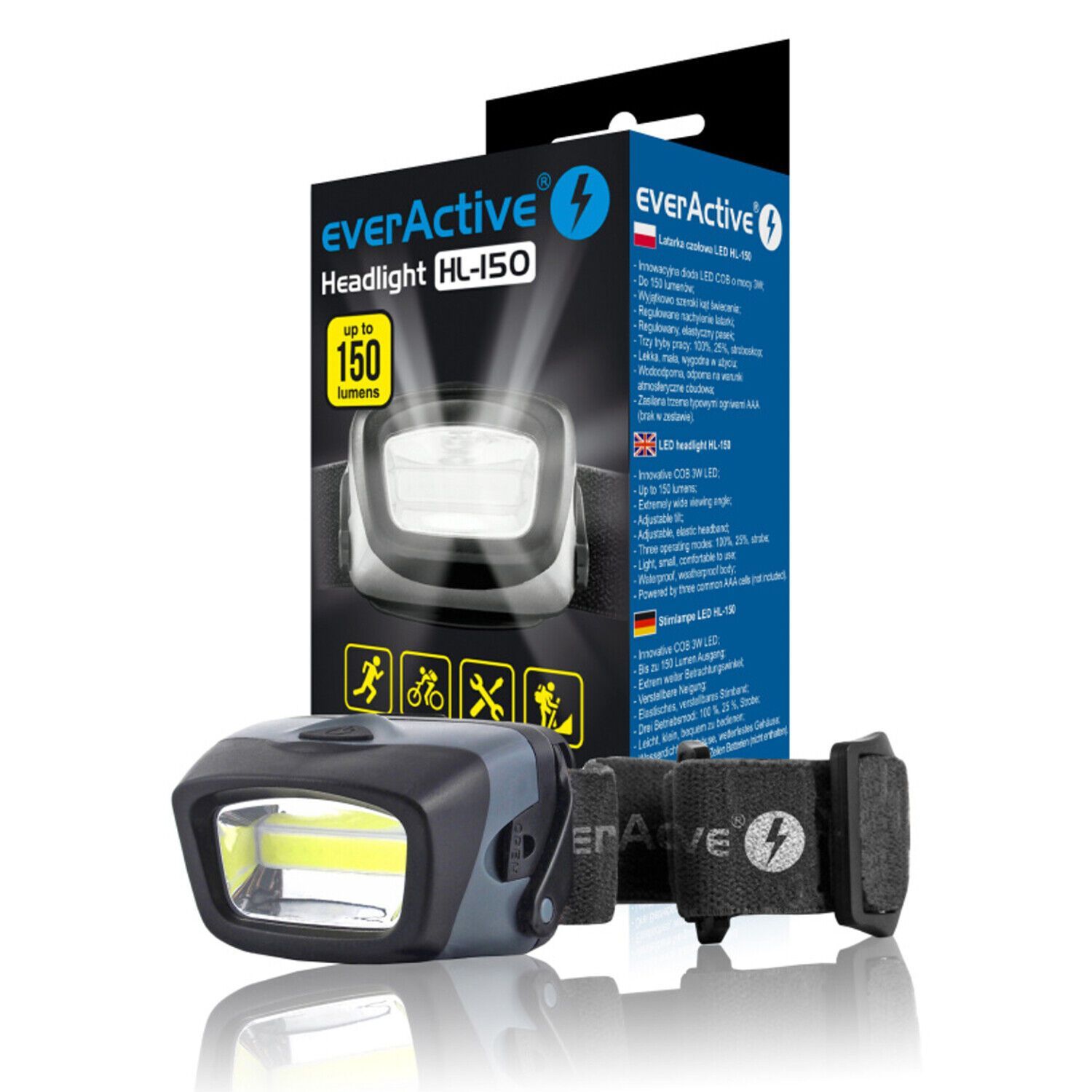 Stirnlampe Kopflampe LED Headlight Outdoor everActive HL-150 3W