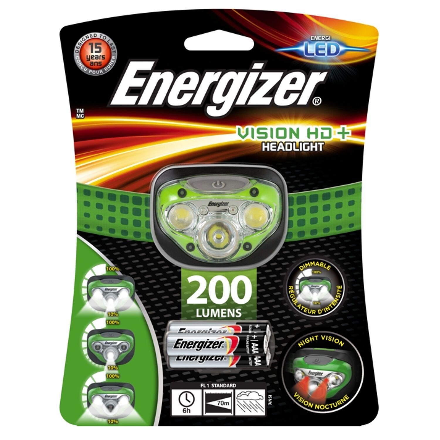 Energizer Stirnlampe LED 200 Lumen 70Meter 50h Kopflampe Licht Headlamp Lampe Arbeitslampe