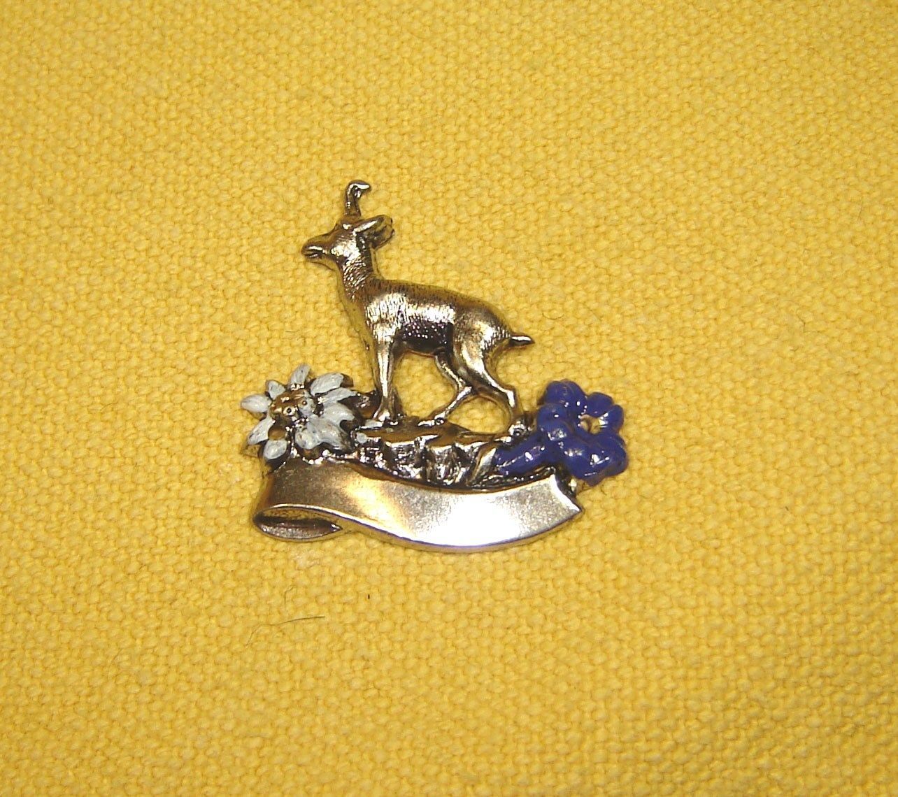 Stocknagel Gams mit Edelweiß Enzian Metall Aufnäher Applikation