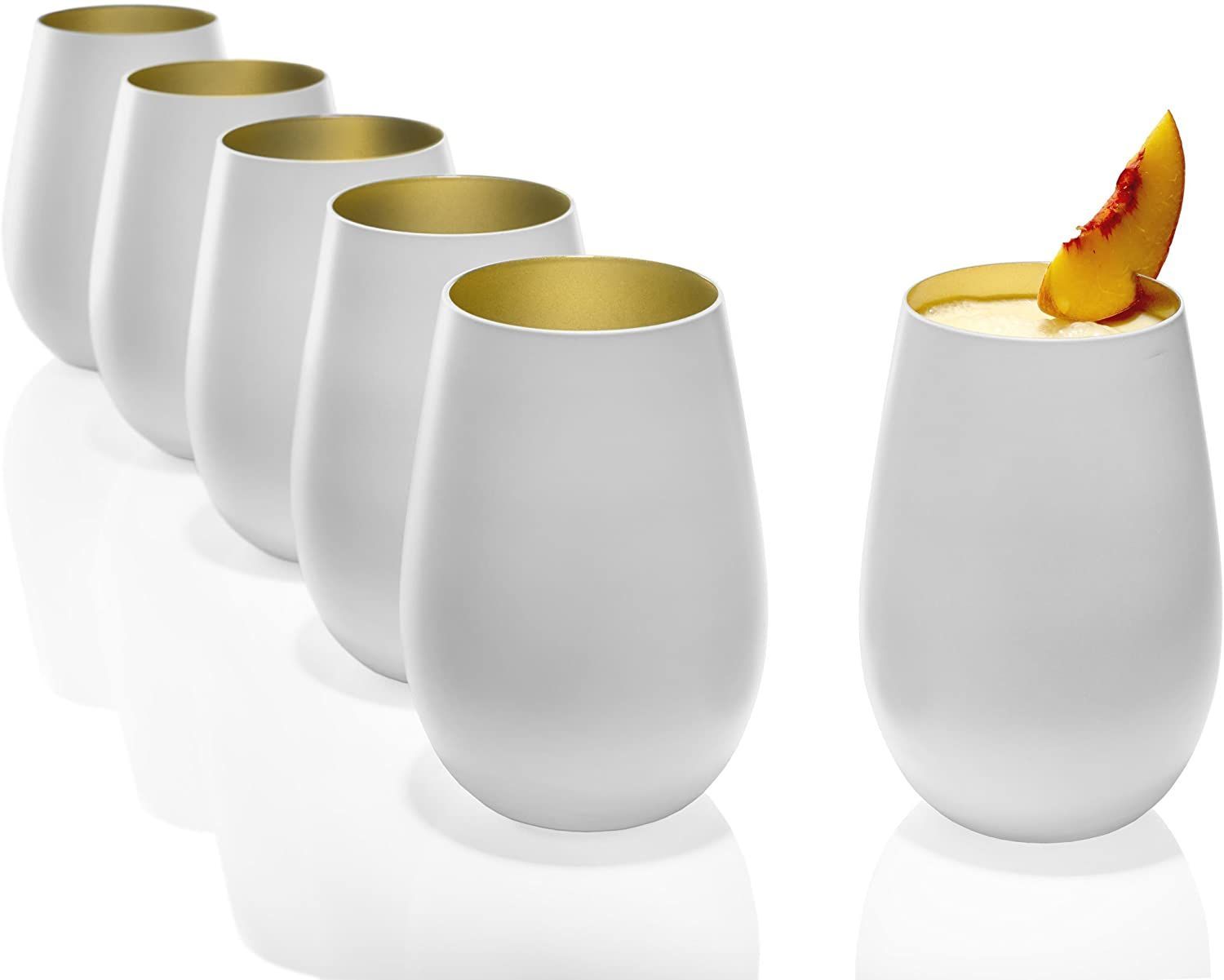 Stölzle Lausitz Becher 6er Set 465 ml matt weiß und gold Wassergläser 3520012