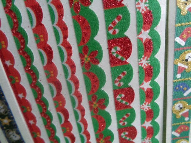 Stoff-Stickerbogen beglimmert Motivbordüren Weihnachten + Blüten 30 x 9 cm - Auswahl