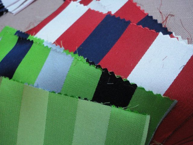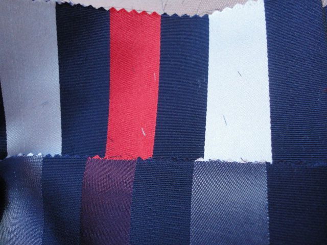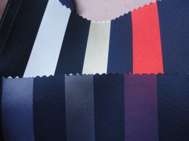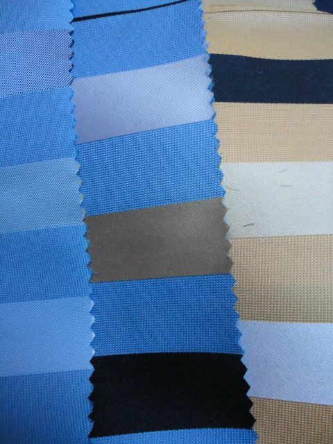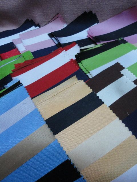 5x blau mit ua. einem roten Streifen mittig, 1x blau mit einem orange Streifen unten, 1x rosa , blauer Streifen unten