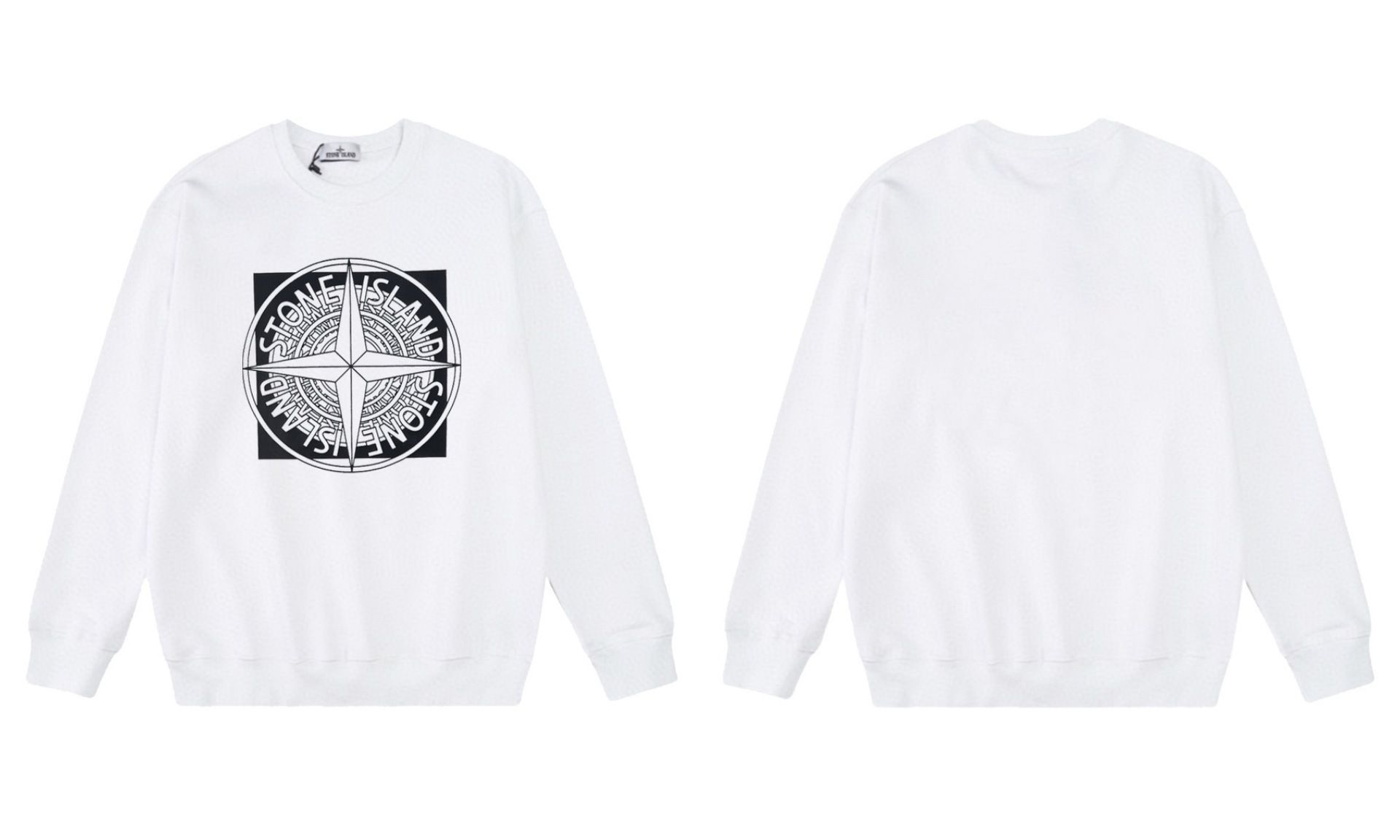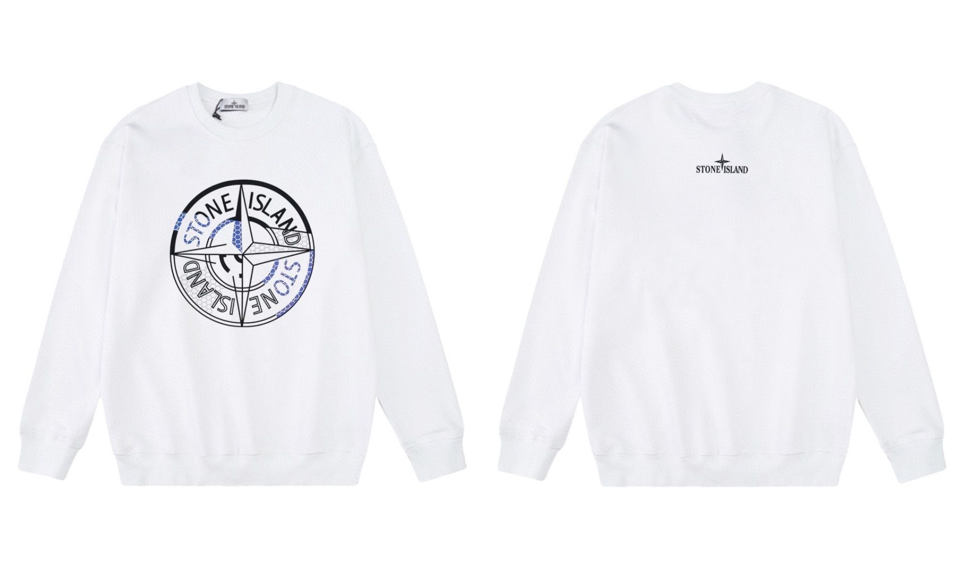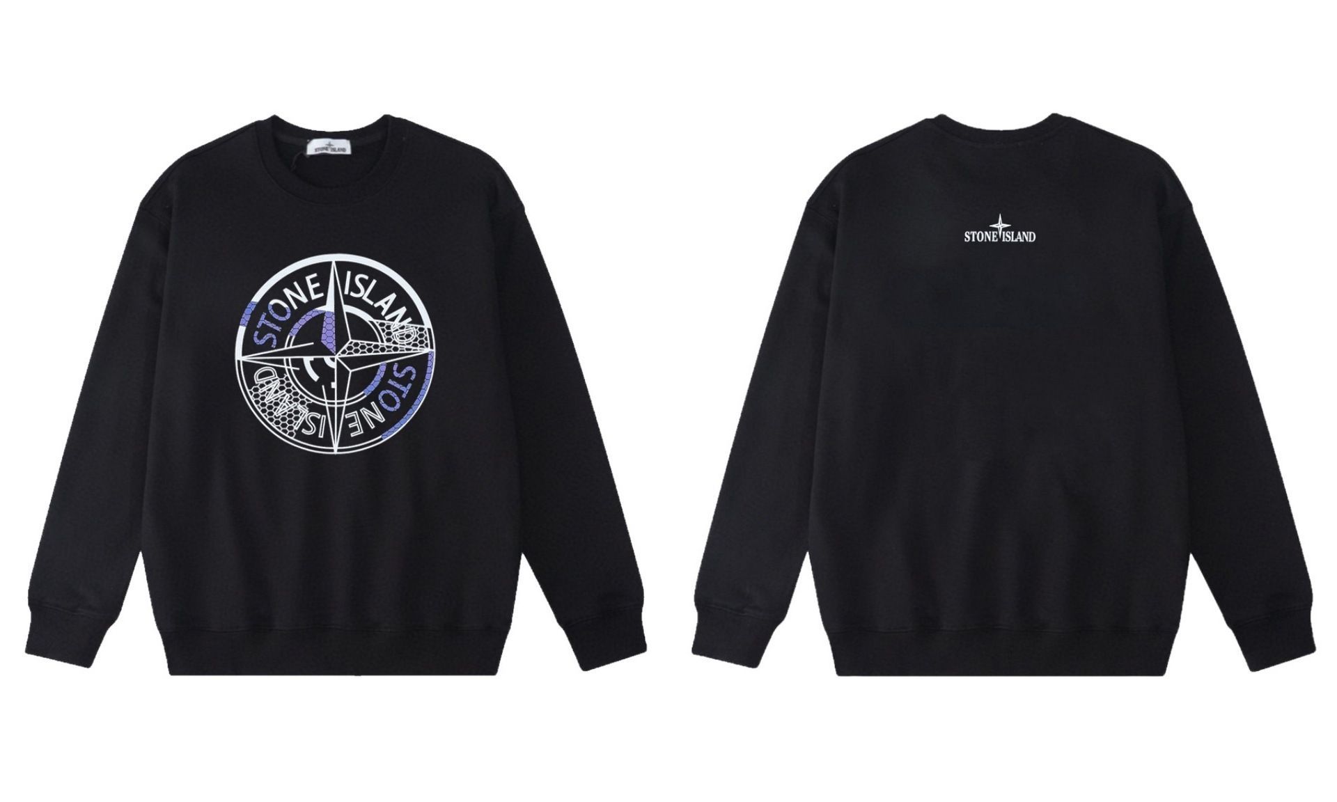 Stone Island Herren Sweatshirt Logo Print Rundhals Pullover Baumwolle Streetwear