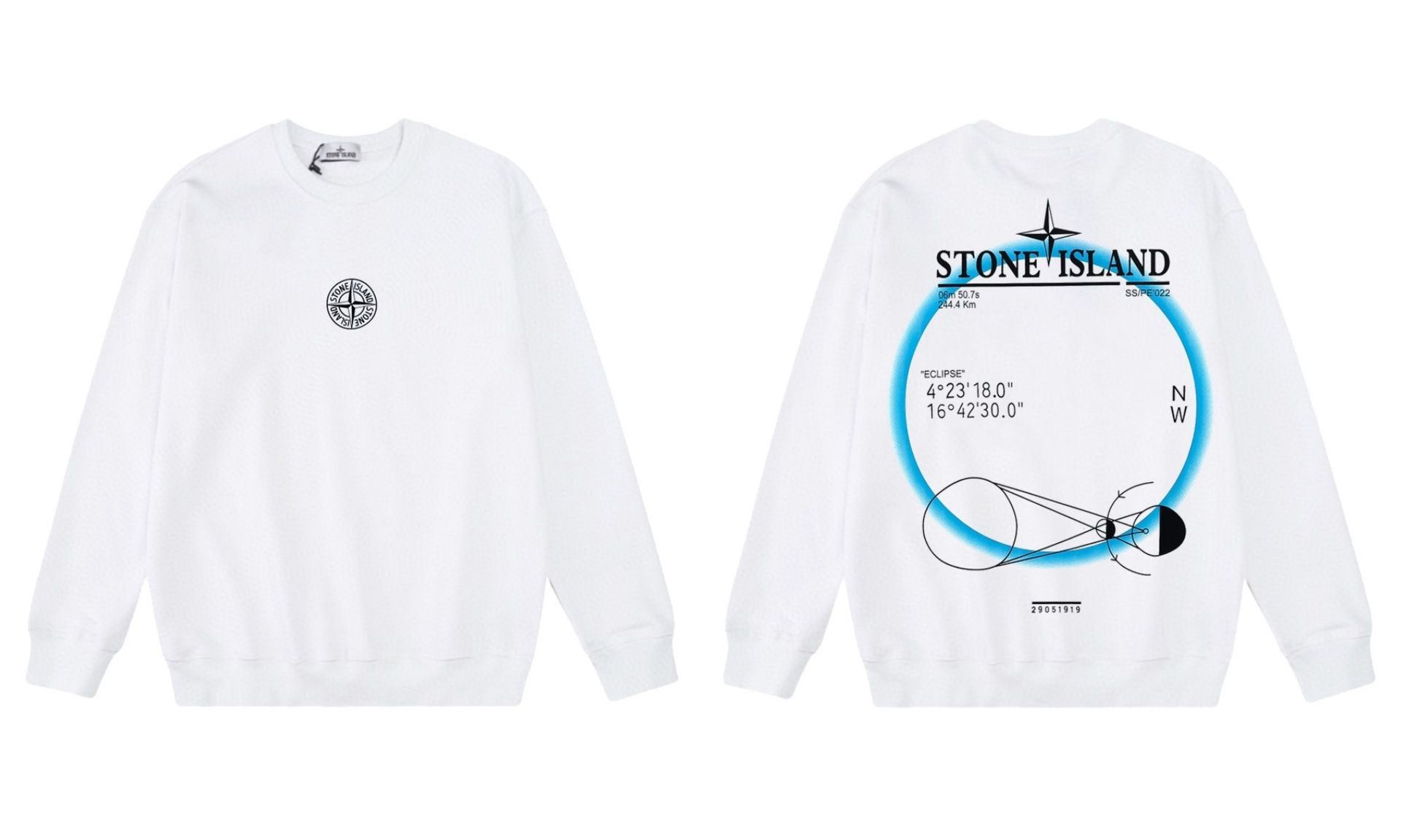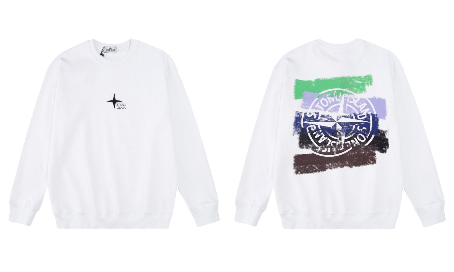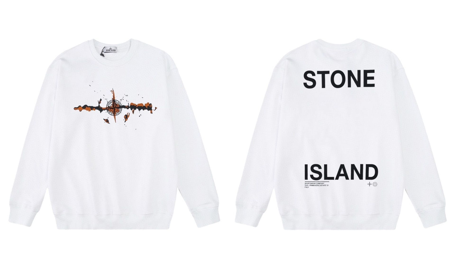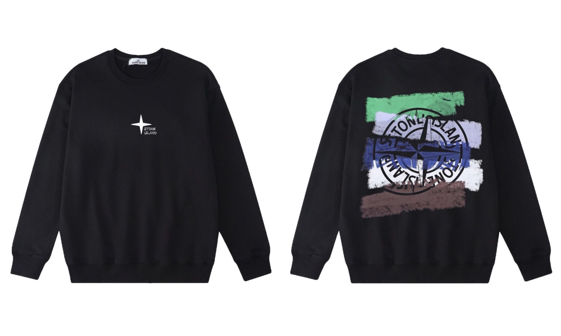 Stone Island Herren Sweatshirt Logo Print Rundhals Pullover Baumwolle Streetwear