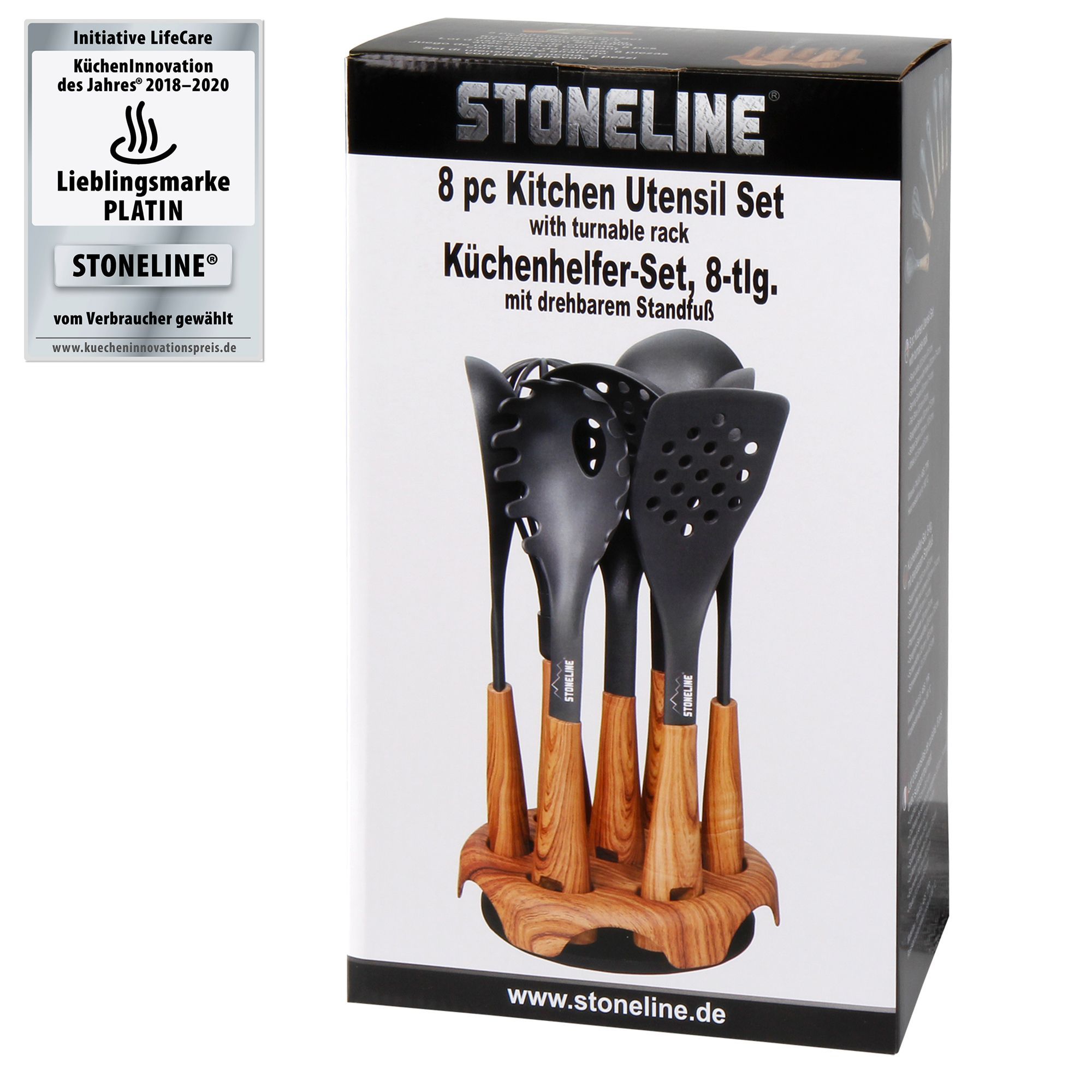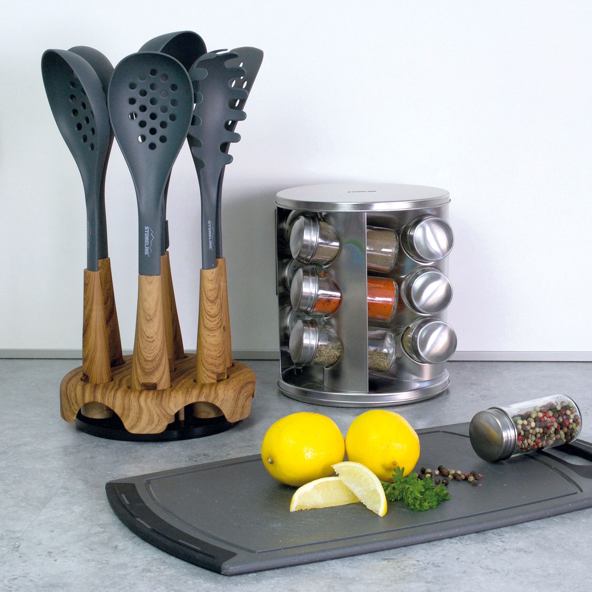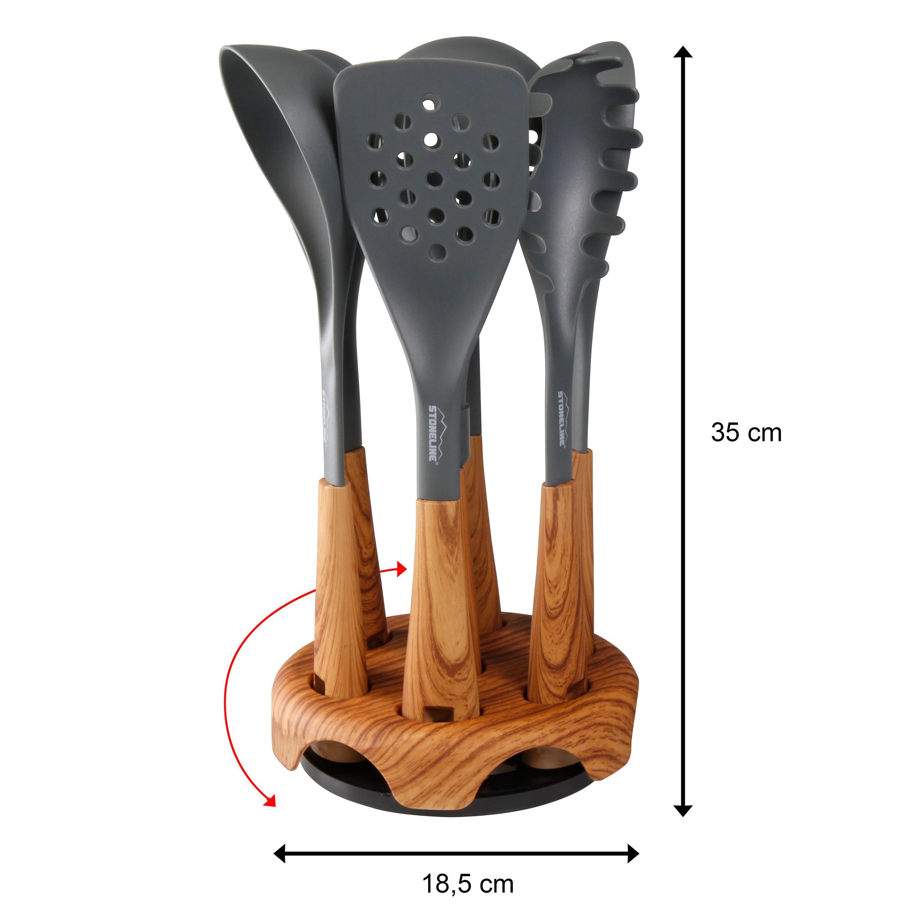 Stoneline® Back to Nature Küchenhelfer-Set, 8-tlg., in drehbarem Aufbewahrungsständer