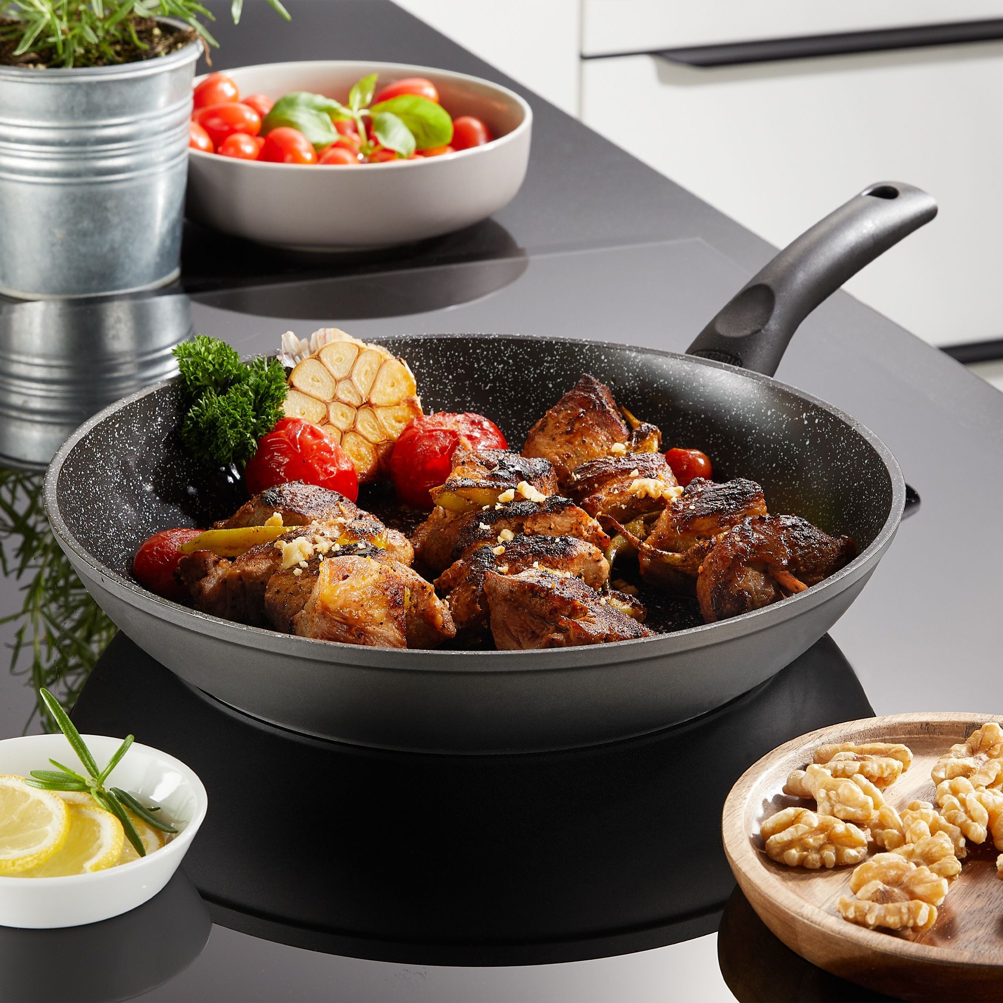 Stoneline® Ceramic Bratpfanne 28 cm, Keramik-Beschichtung, mit Glasdeckel