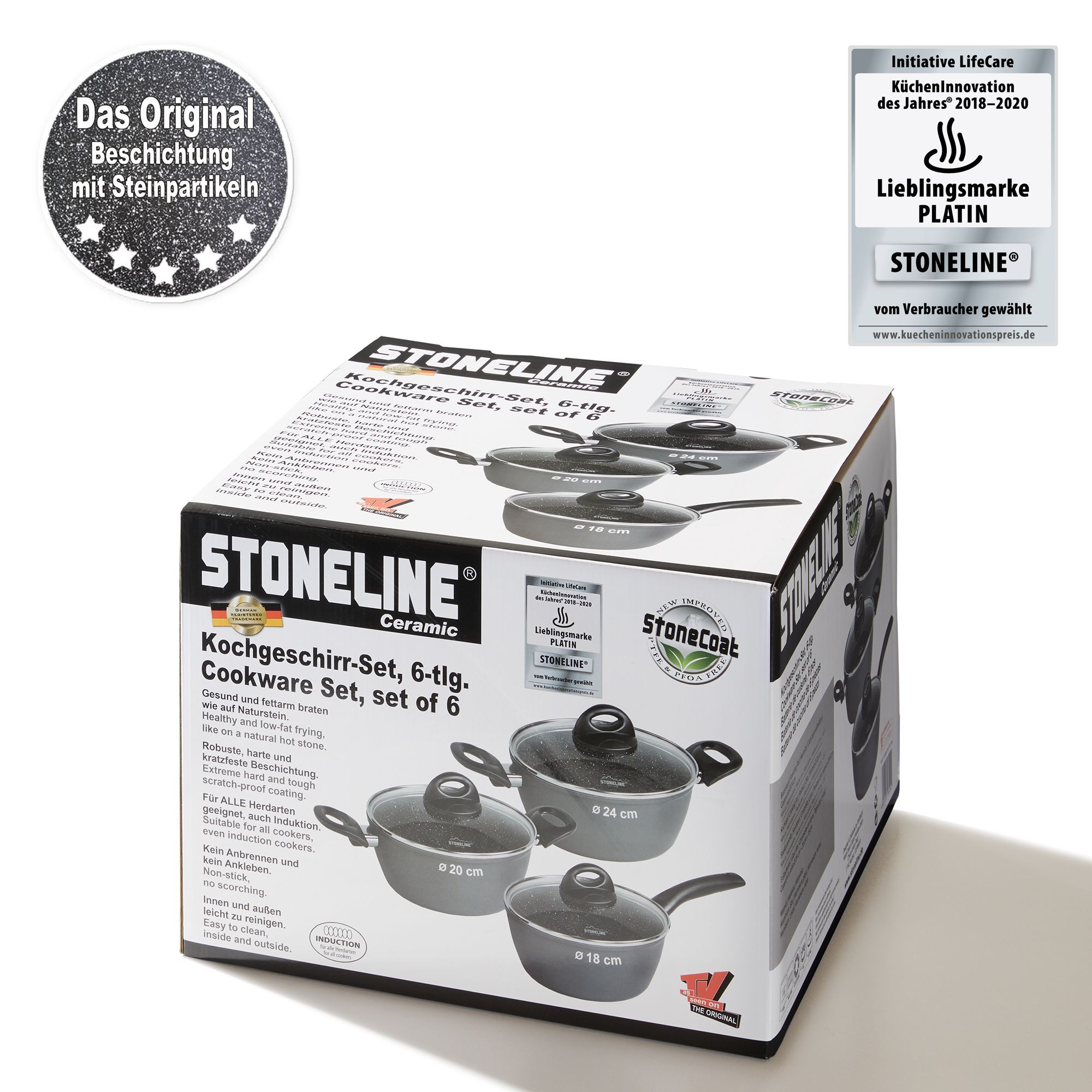 Stoneline® Ceramic Kochgeschirr-Set, 6-tlg. mit Glasdeckeln