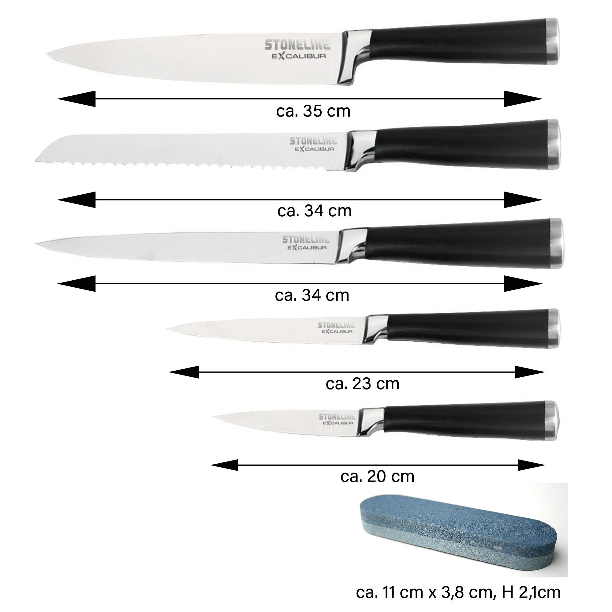 Stoneline® Excalibur® Edelstahl-Messer-Set, 7-tlg., mit Messerblock