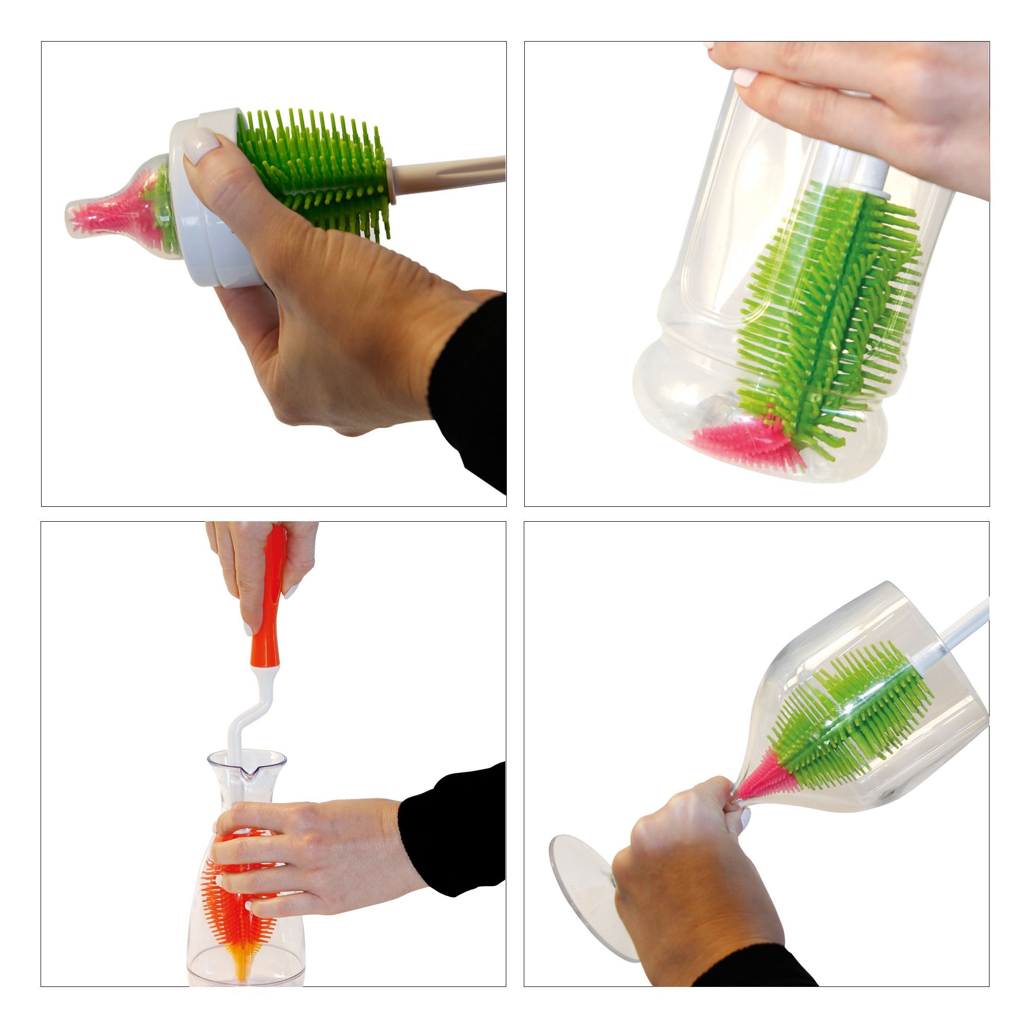 Stoneline® Silikon Flaschenbürste mit drehbarem Stiel 35 cm, rot