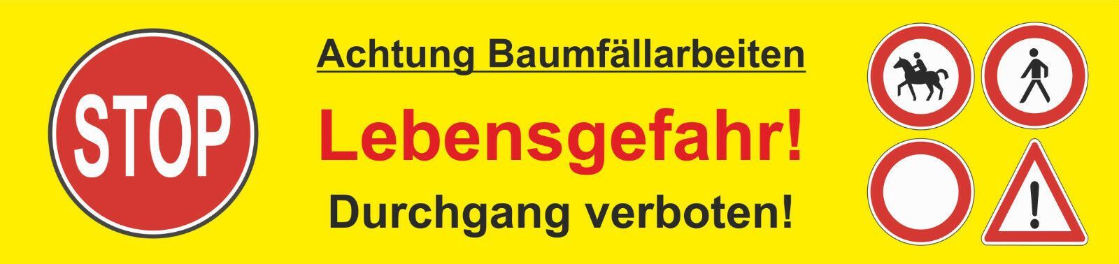 STOP! Achtung Baumfällarbeiten! Lebensgefahr! PVC-Banner mit Ösen 5 Größen