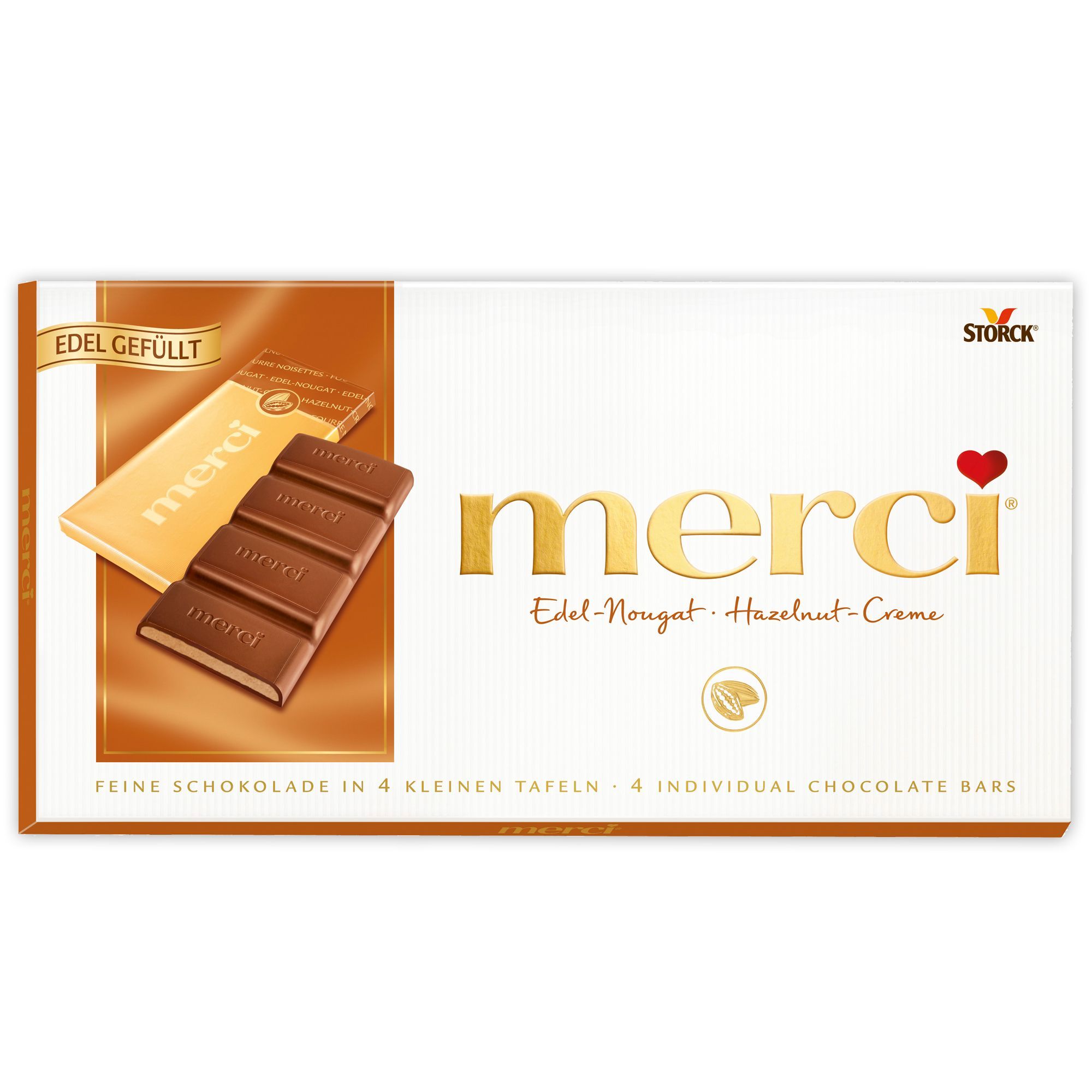 Storck merci Edel Nougat einzeln verpackte Schokoladentafeln 112g