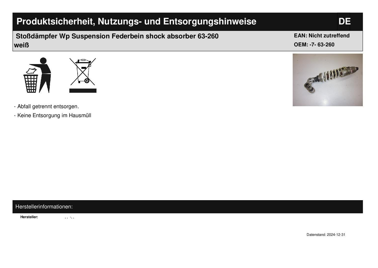 Stoßdämpfer Wp Suspension Federbein shock absorber 63-260 weiß