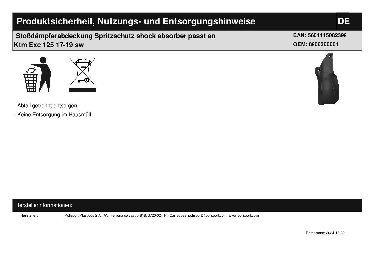 Polisport Stoßdämpferabdeckung Spritzschutz shock absorber passt an Ktm Exc 125 17-19 sw
