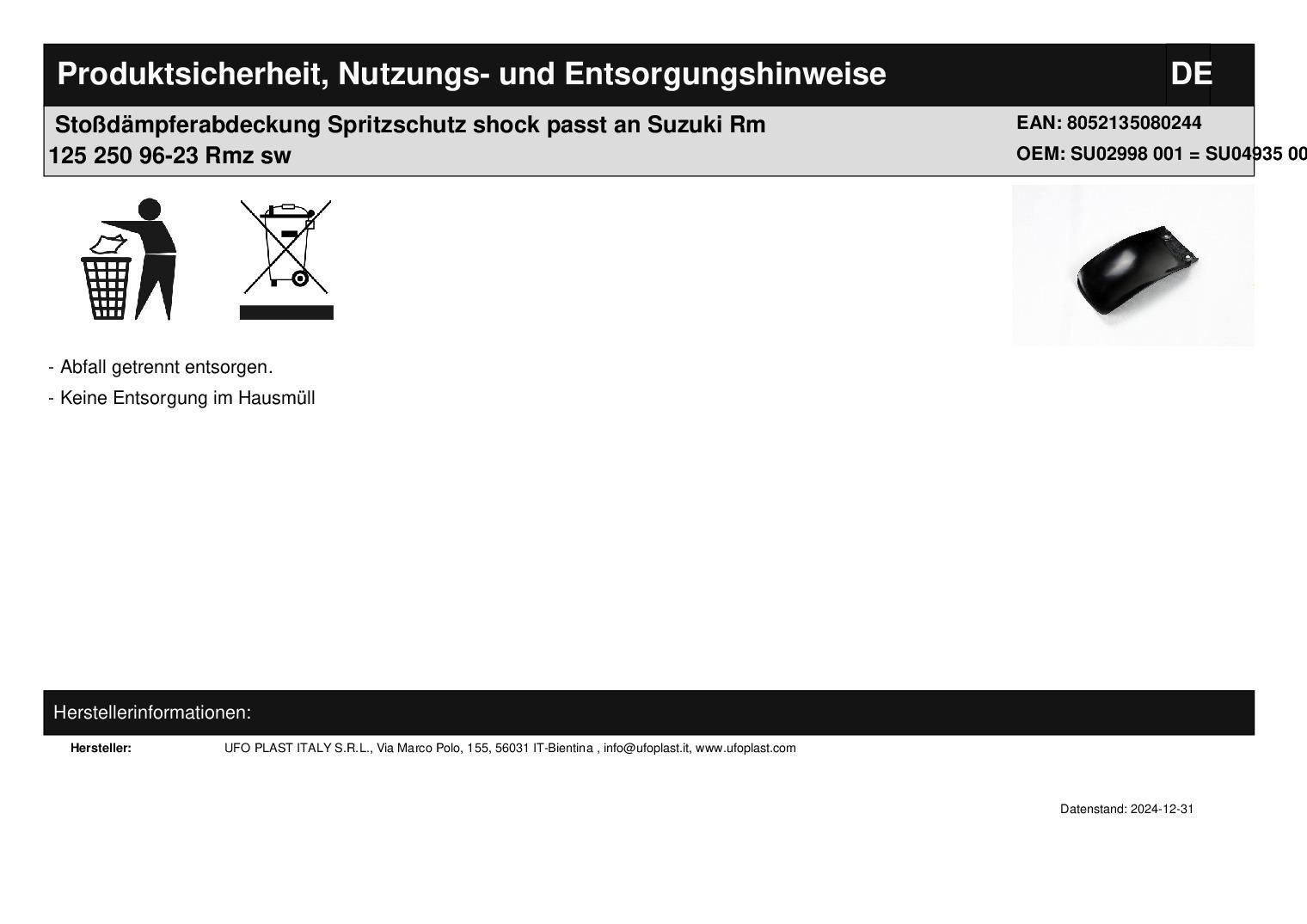 Stoßdämpferabdeckung Spritzschutz shock passt an Suzuki Rm 125 250 96-23 Rmz sw In dieser Auktion gibt es folgenden Artikel zu kaufen: Stoßdämpferabdeckung (siehe Foto) Fahrzeug: passend für Ktm Sx 85 Bj.: 04 - 12 (2-Takt) passend für Suzuki RM 125 Bj.: 96 - 23 RM 250 Bj.: 96 - 23 RMZ 250 Bj.: 07 -