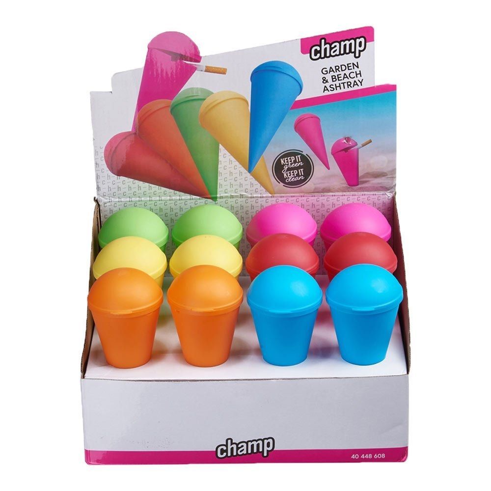 Champ Strandaschenbecher in Eisform mit Deckel aus Kunststoff, neonfarben 12 Stück