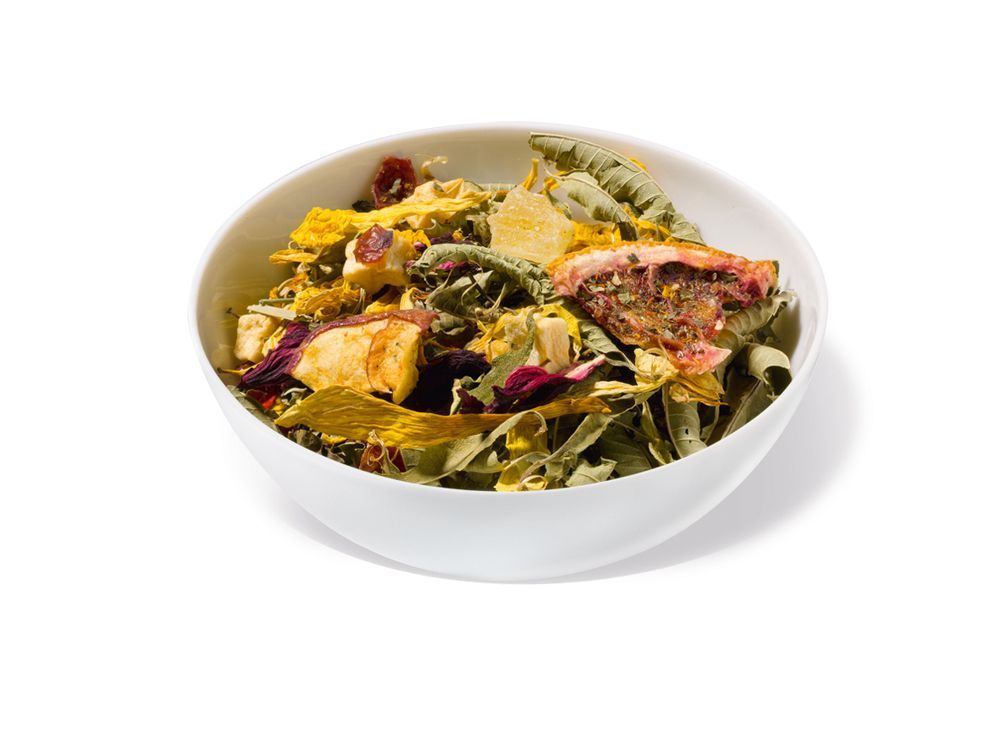 STRANDGÖRENaturbelassene Kräuter-/Früchteteemischung.Der Geschmack naturbelassener Sanddornbeeren auf einer fruchtigen Kräuterbasis mit süßen und frischen Noten verspricht genussvolle Momente.Zutaten: Apfelstücke, Hagebuttenschalen, Beerenblätter (Brombeerblätter, Schwarze Johannisbeerblätter), Zitronenverbene, Melisse, Sanddornbeeren, Ananasstücke (Ananas, Zucker, Säuerungsmittel: Zitronensäure), Blutorangenscheiben, Hibiskusblüten, Lemongras, Apfelecken, Sonnenblumenblütenblätter,...