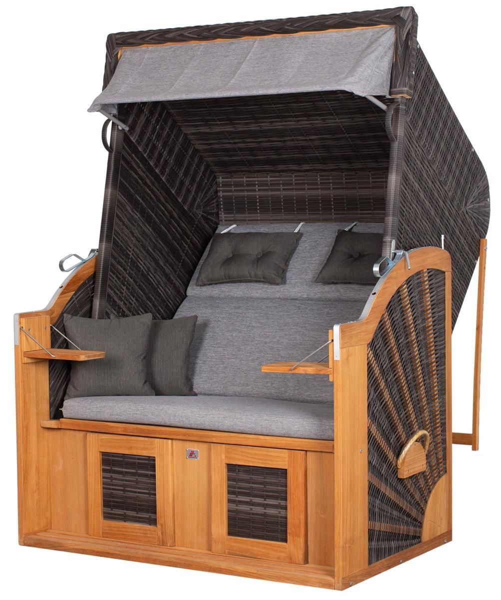 Strandkorb deVries PURE® Classic XL SUN Teak - PE stone grey - Dessin 466 - inkl