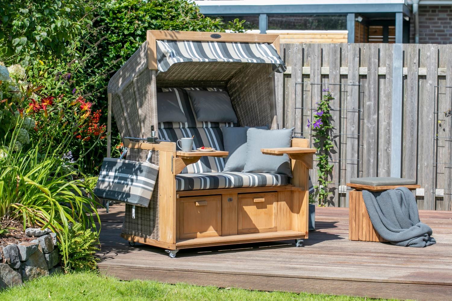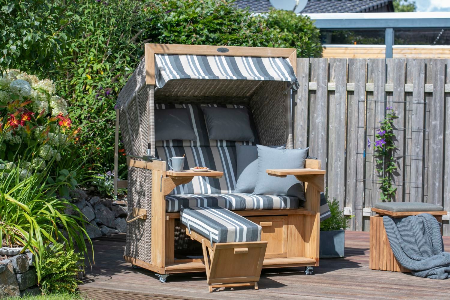 Strandkorb deVries PURE® Friesland Sylt XL - PE white kubu - Dessin 158 - inkl
