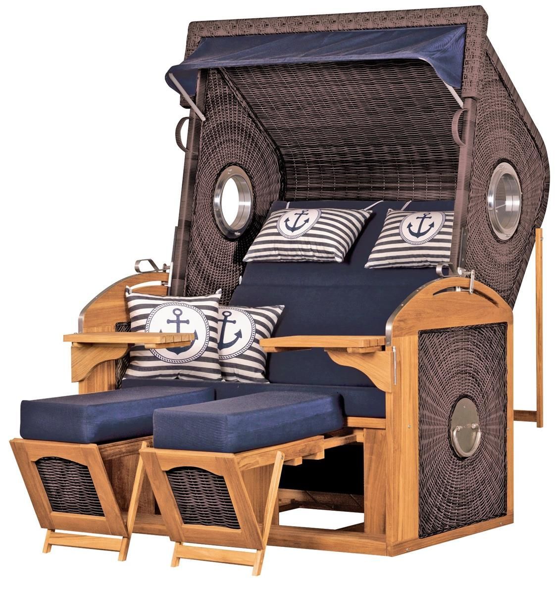Strandkorb deVries PURE® Sailor XL - PE stone grey - Dessin 198 - inkl. Schutzhülle