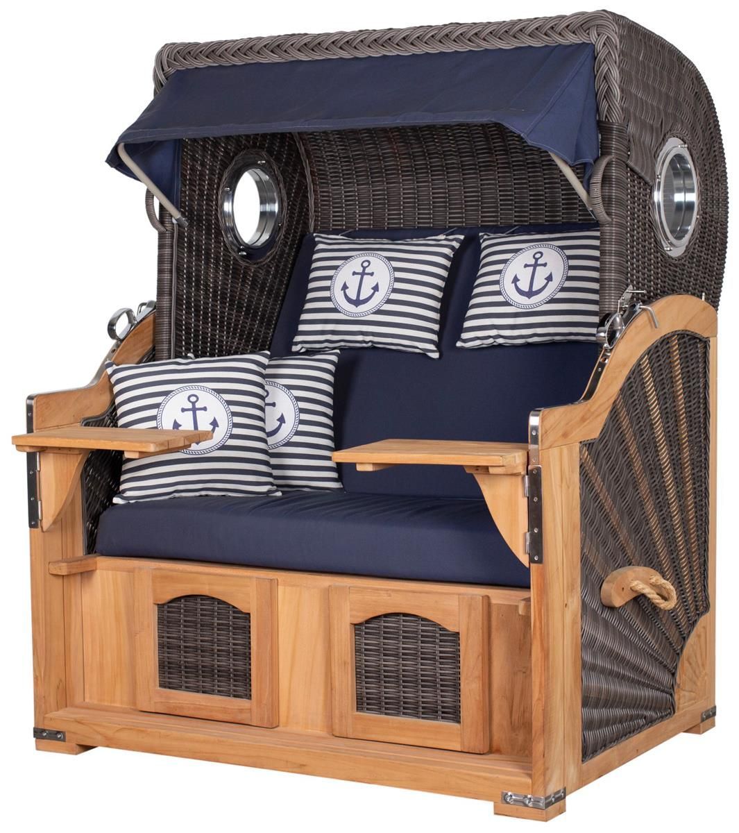Strandkorb deVries PURE® Seemöwe XL - PE stone grey - Dessin 198 - inkl. Schutzhülle