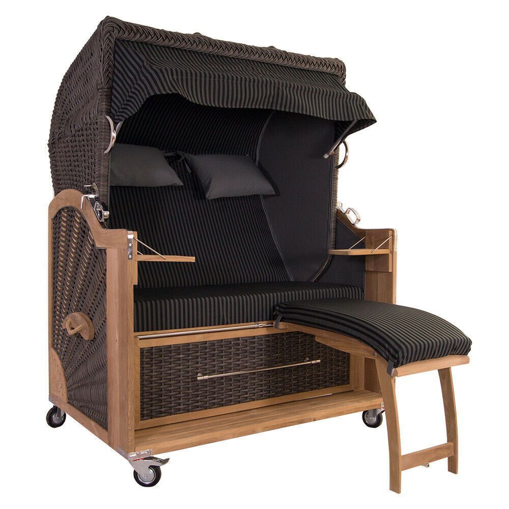 Strandkorb Kampen 2,5-Sitzer Mocca Duo schwarz grau gestreift Teak Volllieger PE