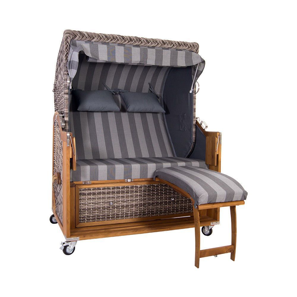 Strandkorb Kampen 2,5-Sitzer White Oak T27 Pardo Brecha Polyrattan Volllieger