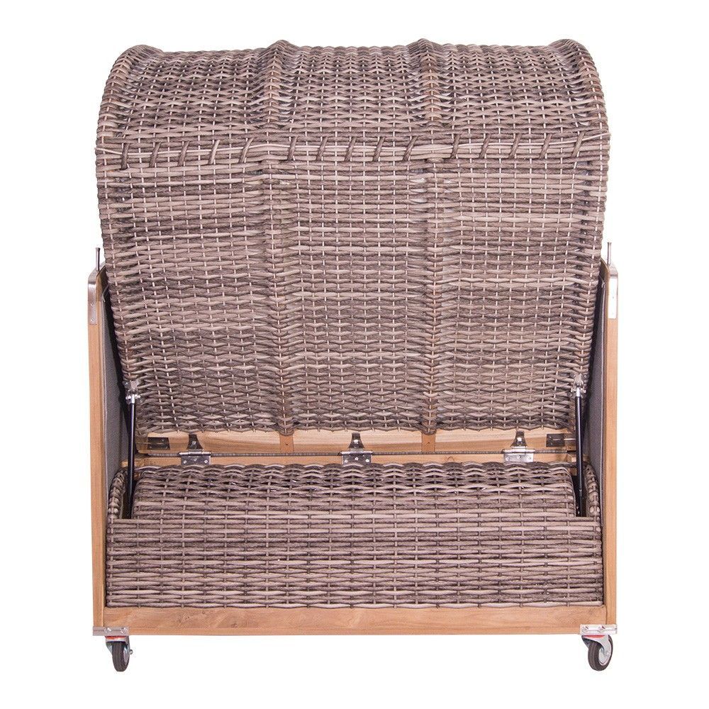 • Strandkorb Kampen Spezial 2,5-Sitzer Mocca Sport grau Polyrattan Teakholz Teak