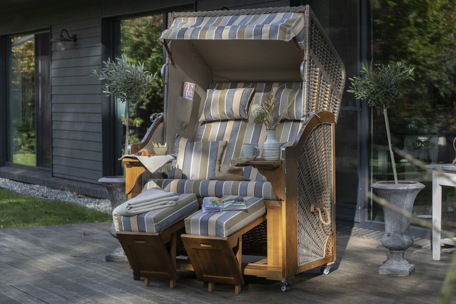 Strandkorb Komplettset - bene living - Schleswig Pinie - PE mokka - Modell 557