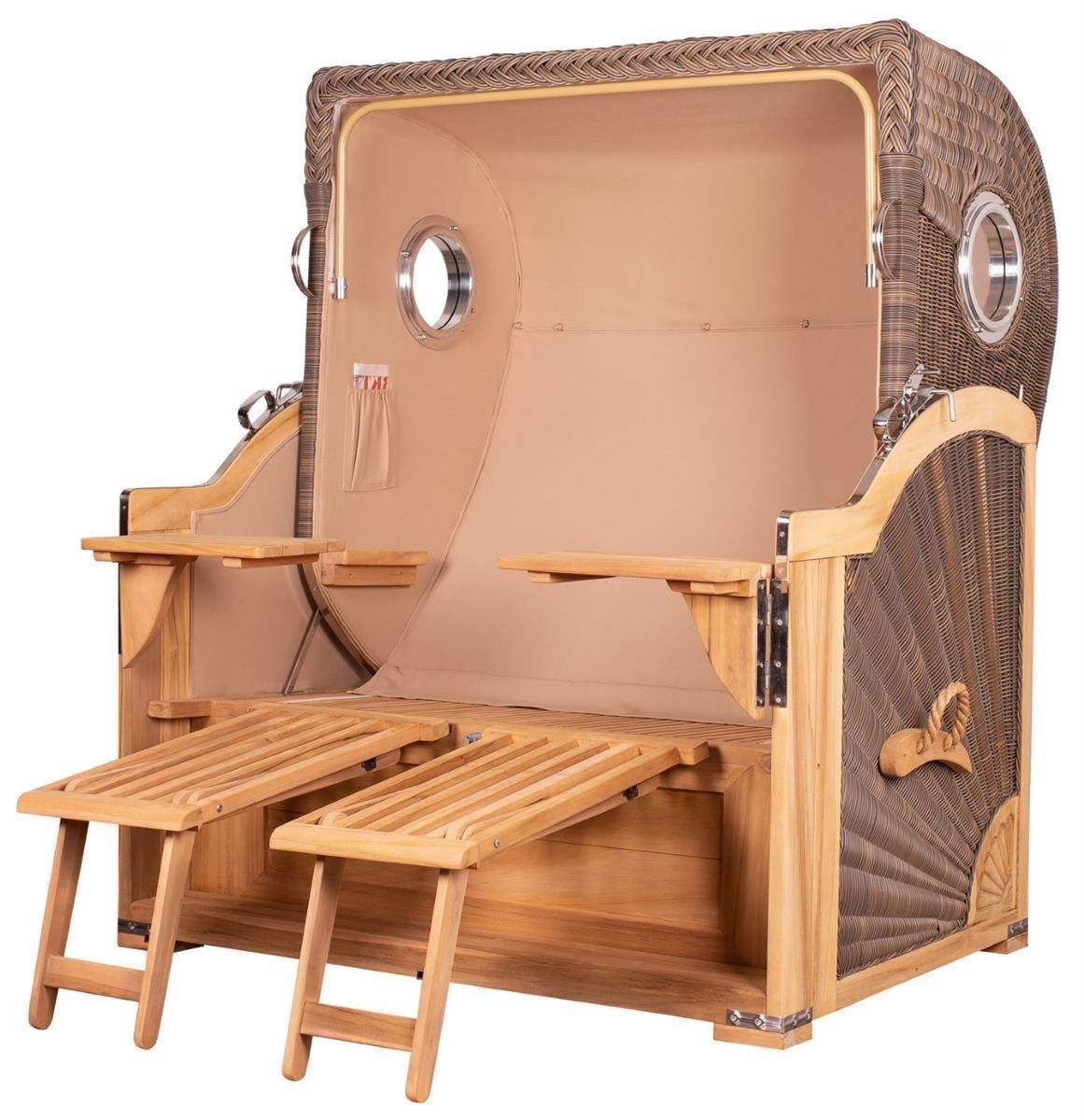 Strandkorb-Set bene living Königssee Teak Bullauge PE grau Modell 585 Liftersystem