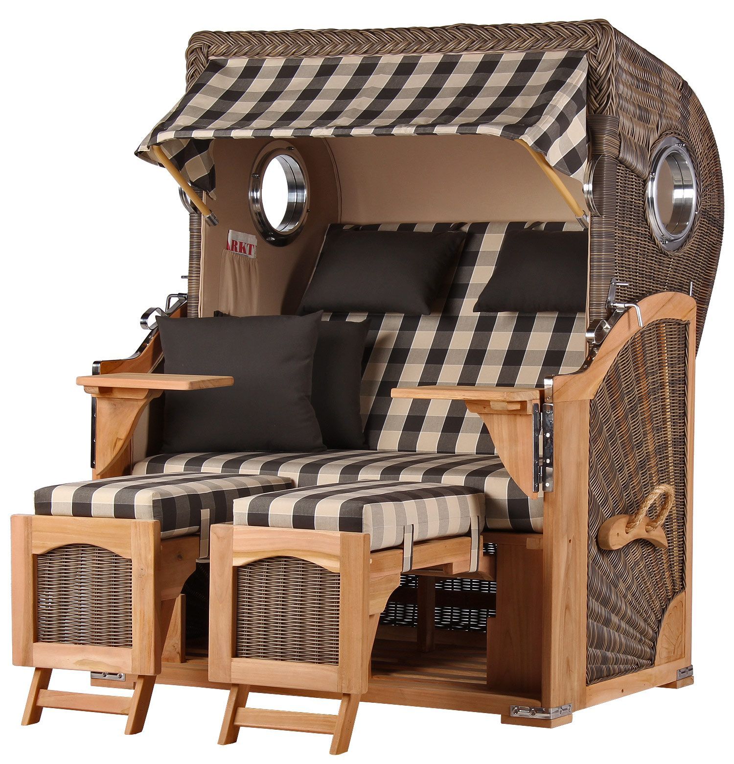 Strandkorbset - bene living - Ammersee 2-Sitzer Teak - PE grau - Modell 505