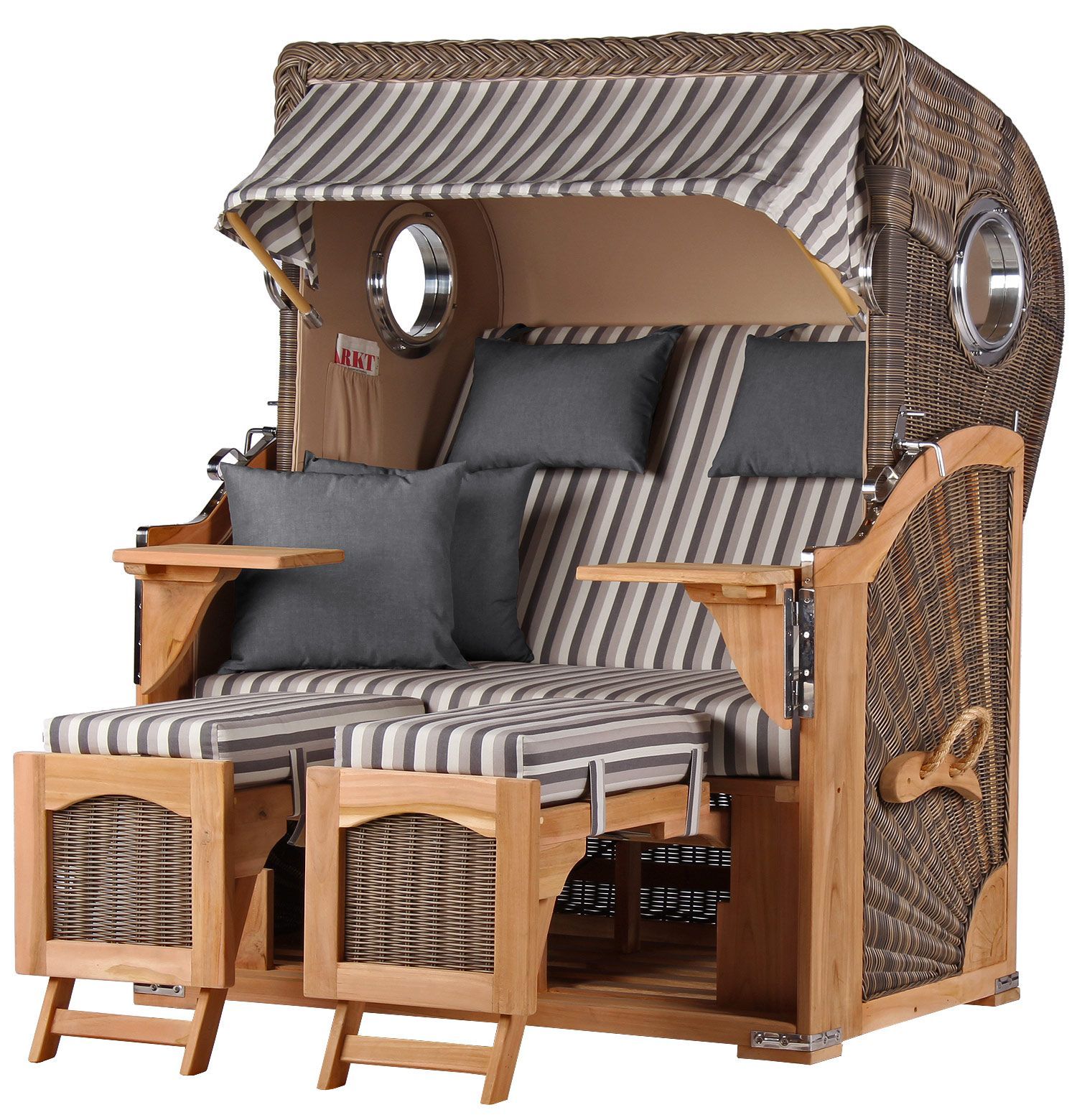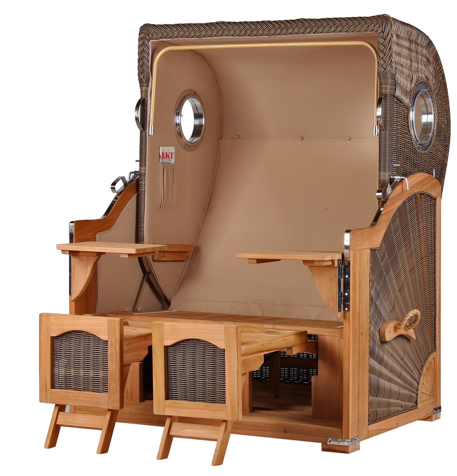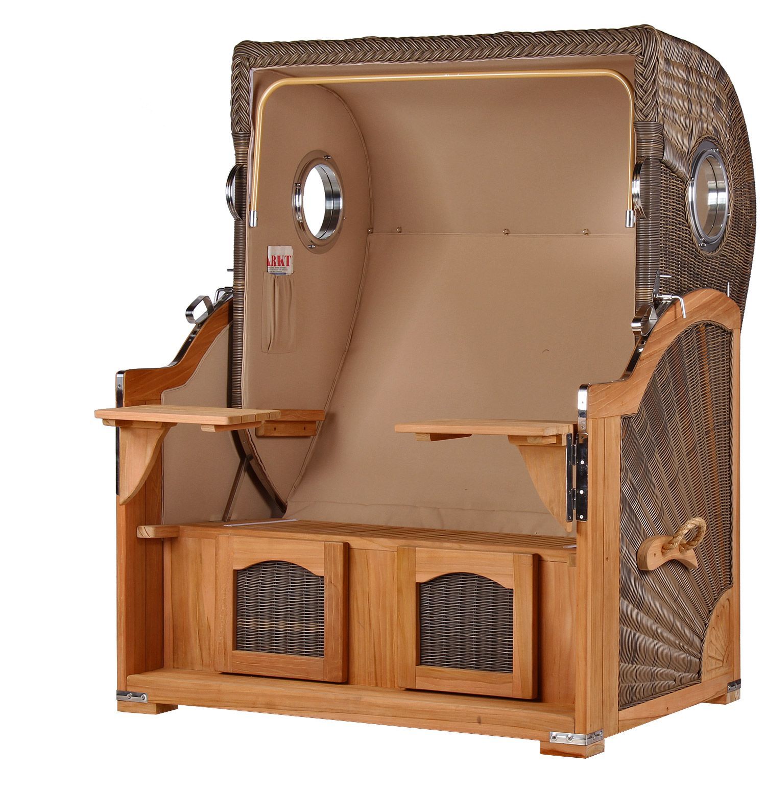Strandkorbset - bene living - Ammersee 2-Sitzer Teak - PE grau - Modell 545