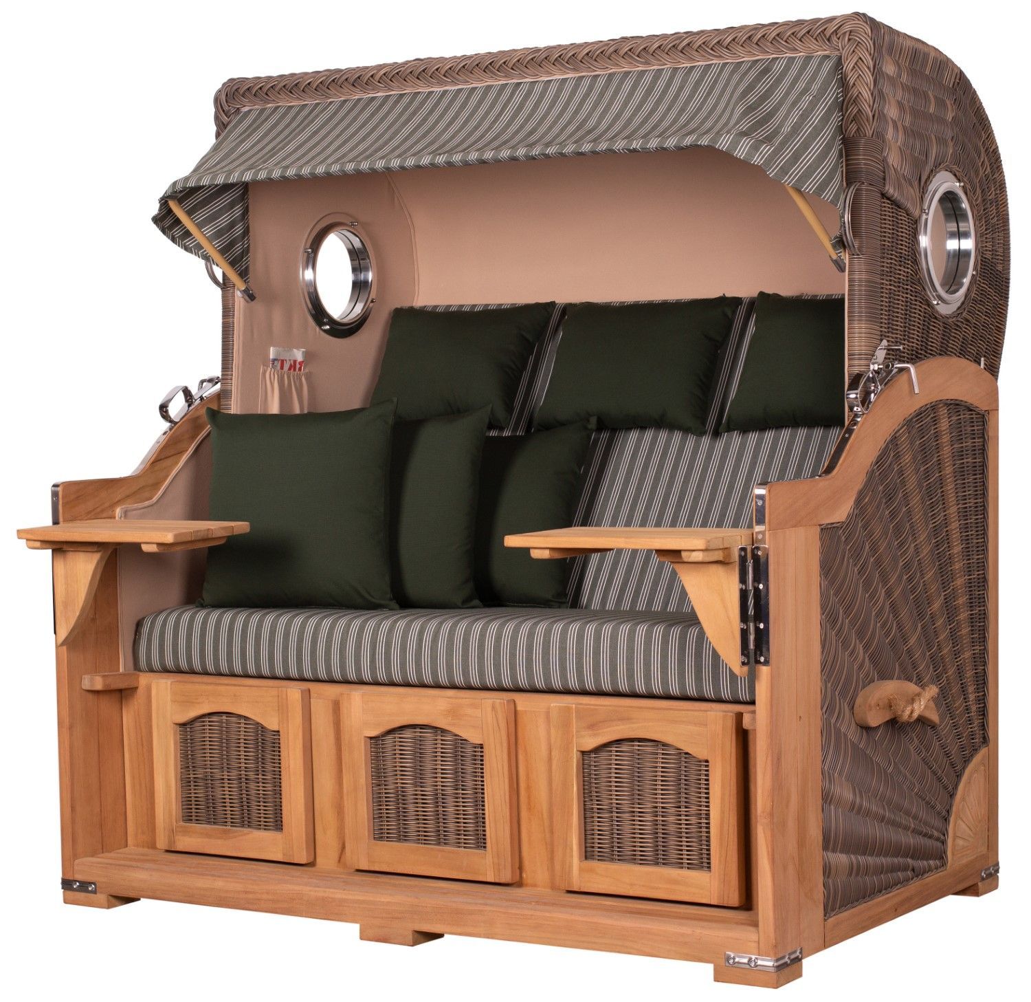 Strandkorbset - bene living - Ammersee 3-Sitzer Teak - PE grau - Modell 504