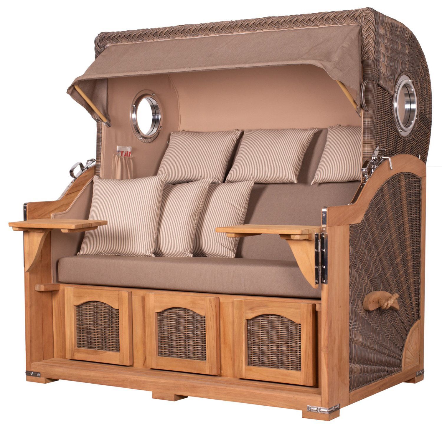 Strandkorbset - bene living - Ammersee 3-Sitzer Teak - PE grau - Modell 534