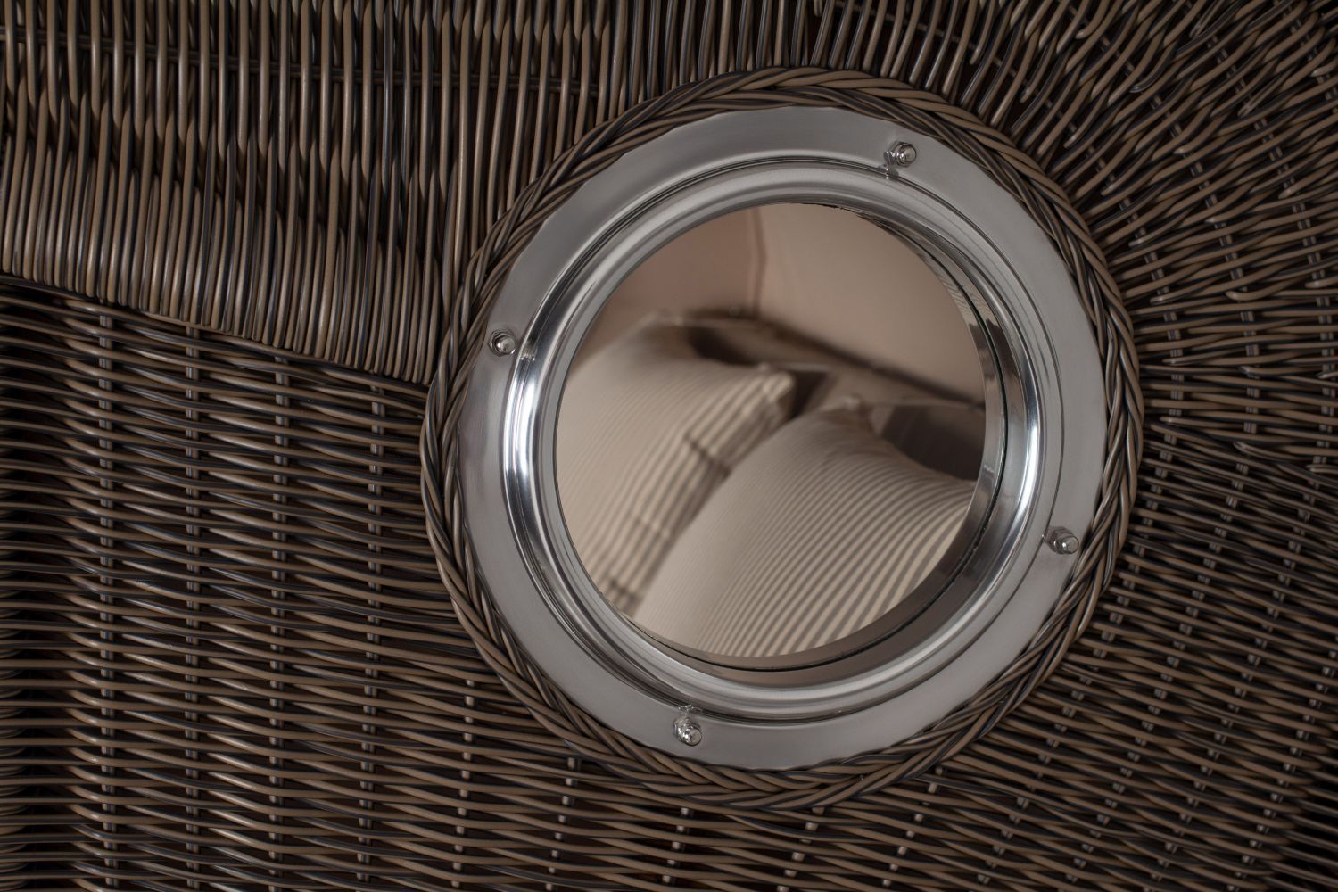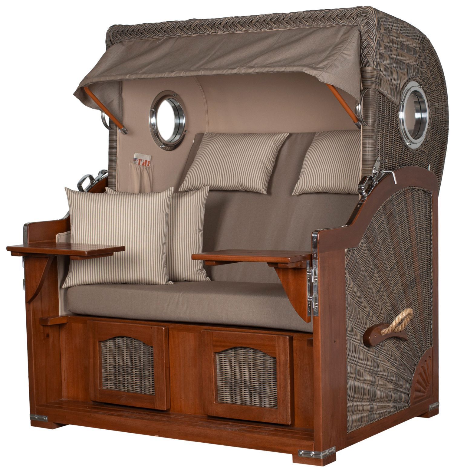 Strandkorbset bene living Ammersee Grande XL Mahagoni Bullauge PE grau Modell 534