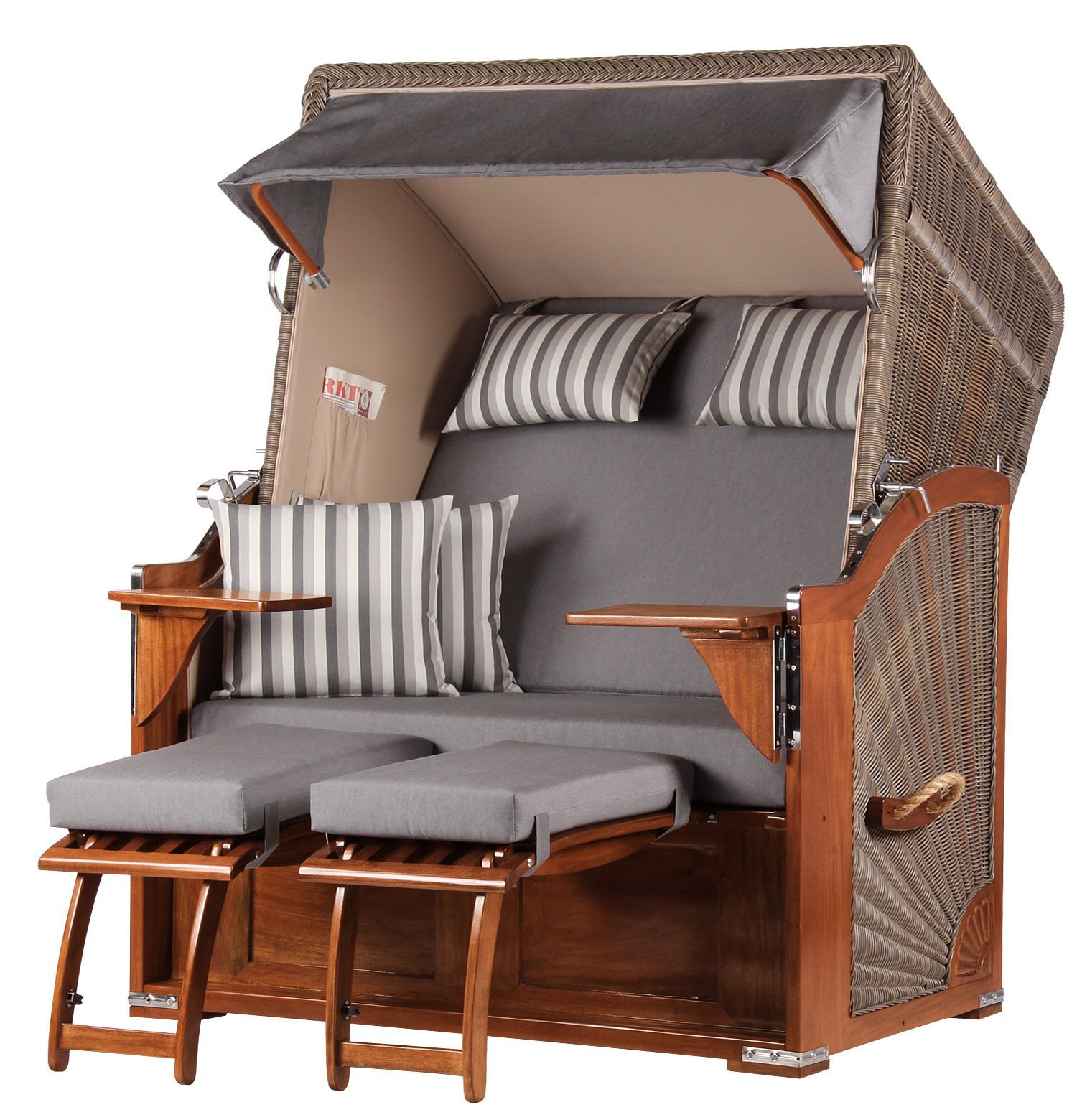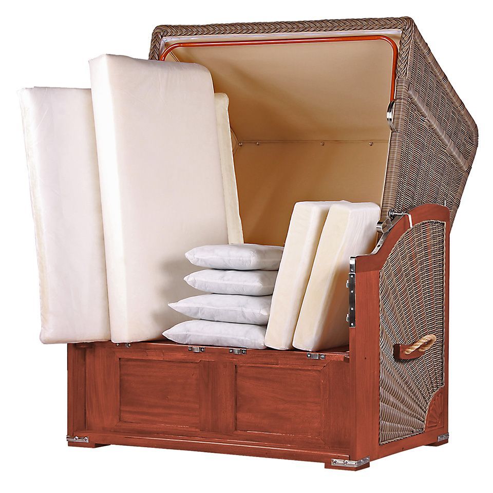 Strandkorbset - bene living - Schaalsee 2-Sitzer Mahagoni - PE grau - Modell 544