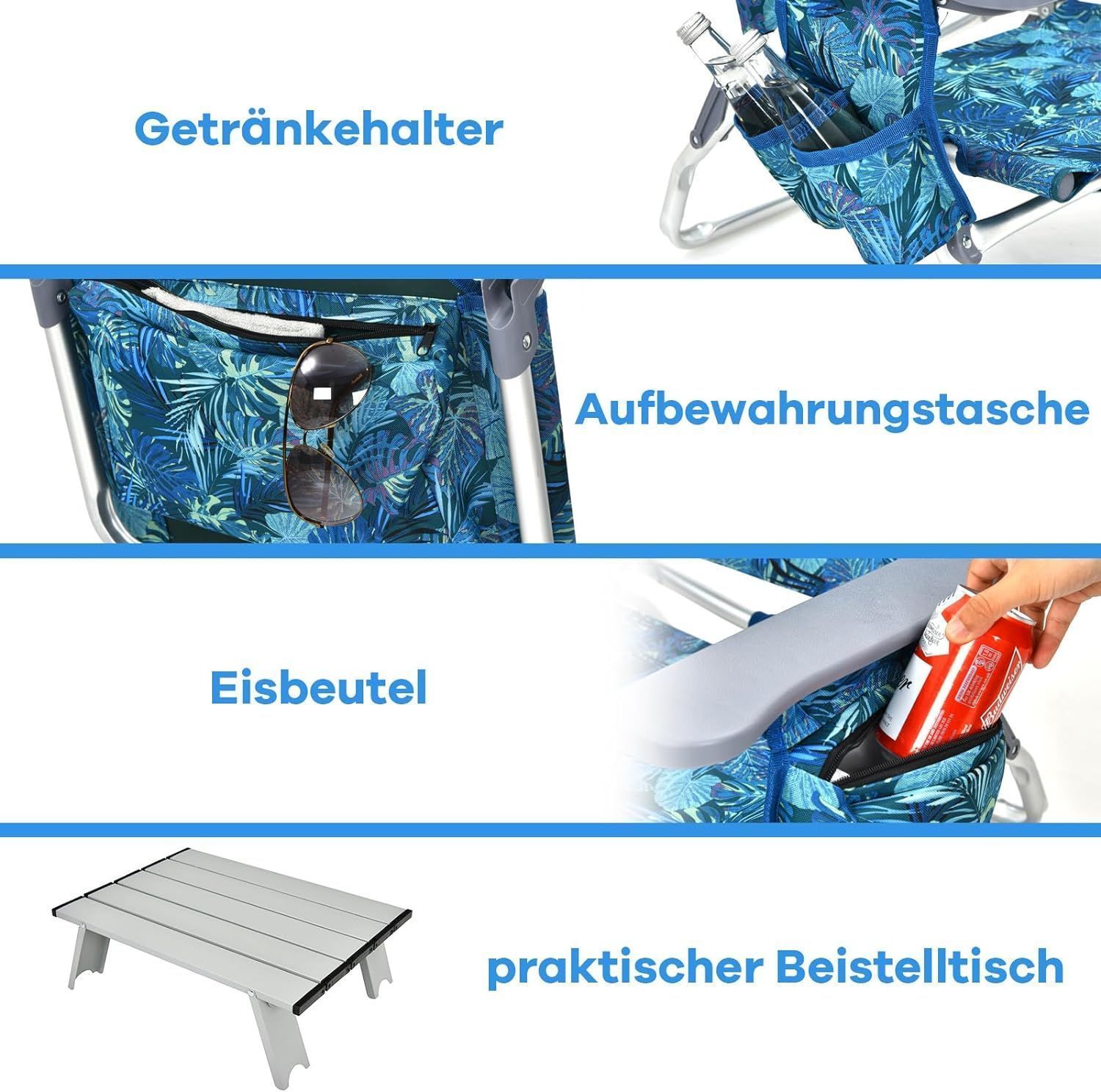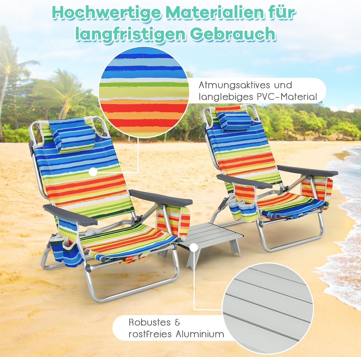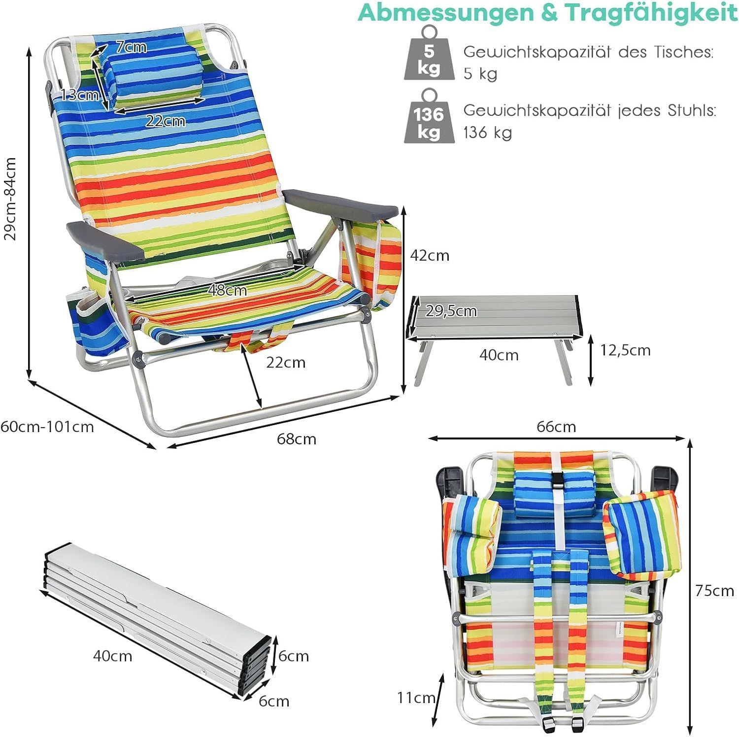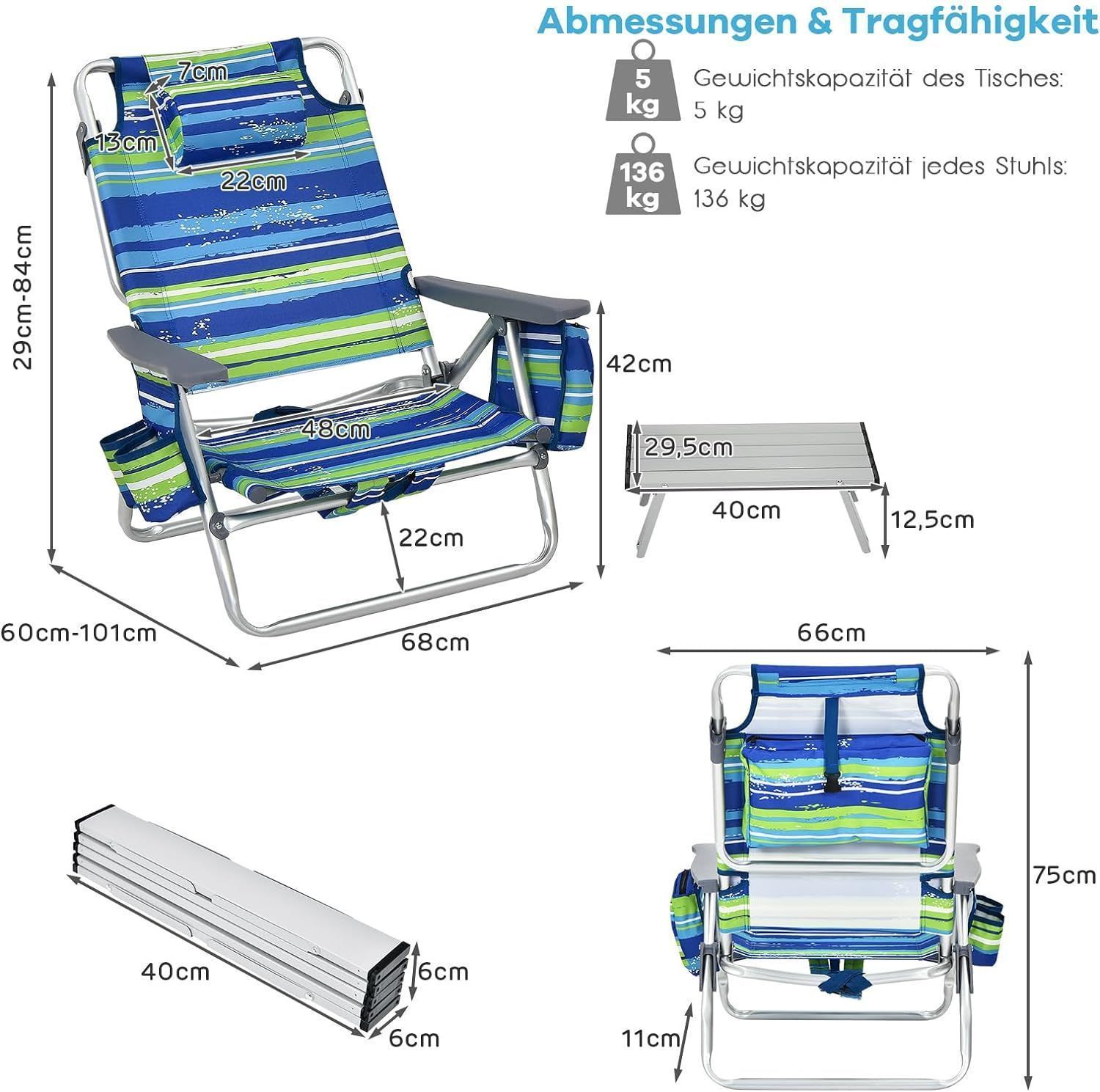 Strandstühle und Tisch Set, klappbare Campingstühle mit Verstellbarer Rückenlehne