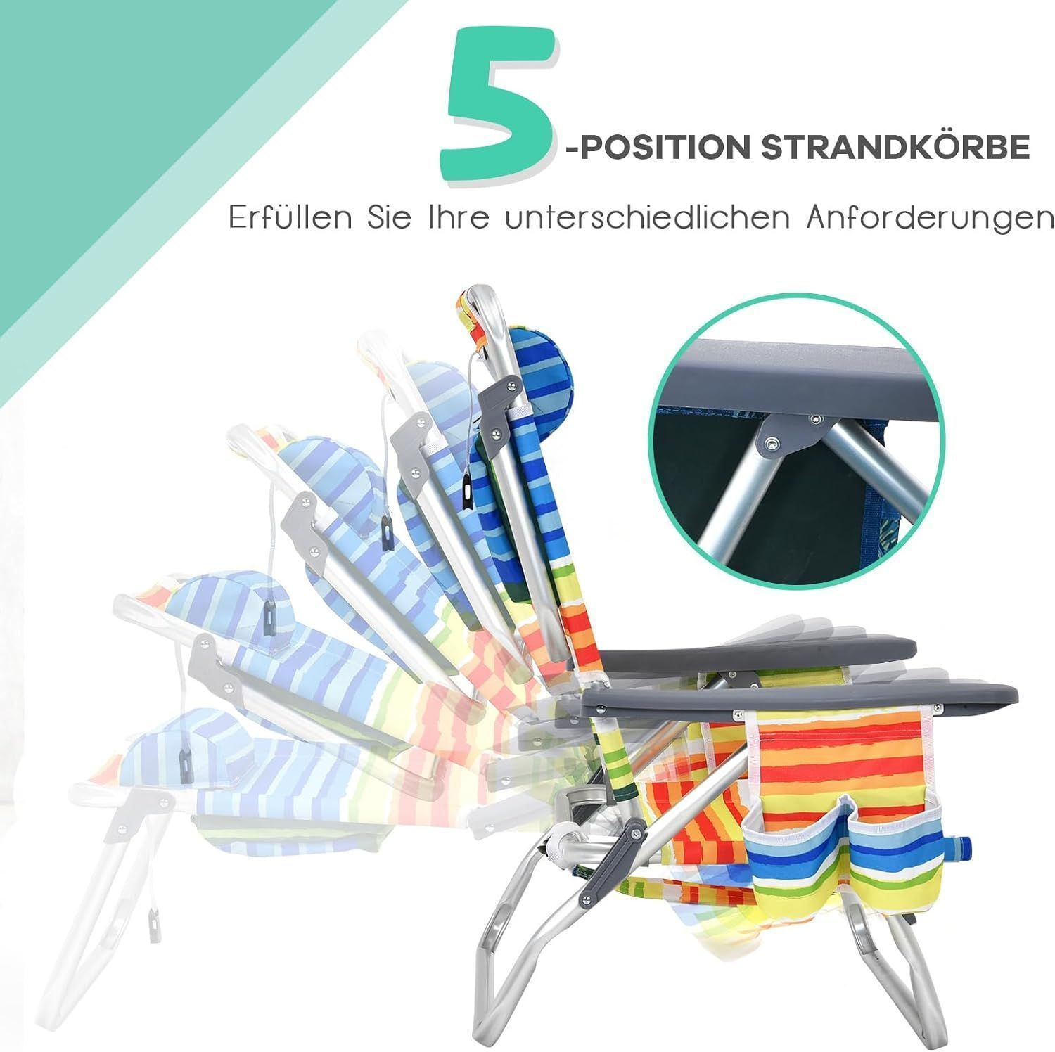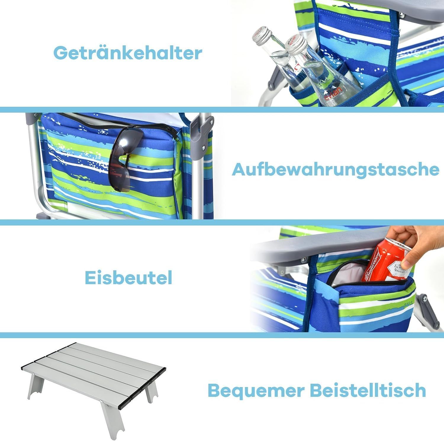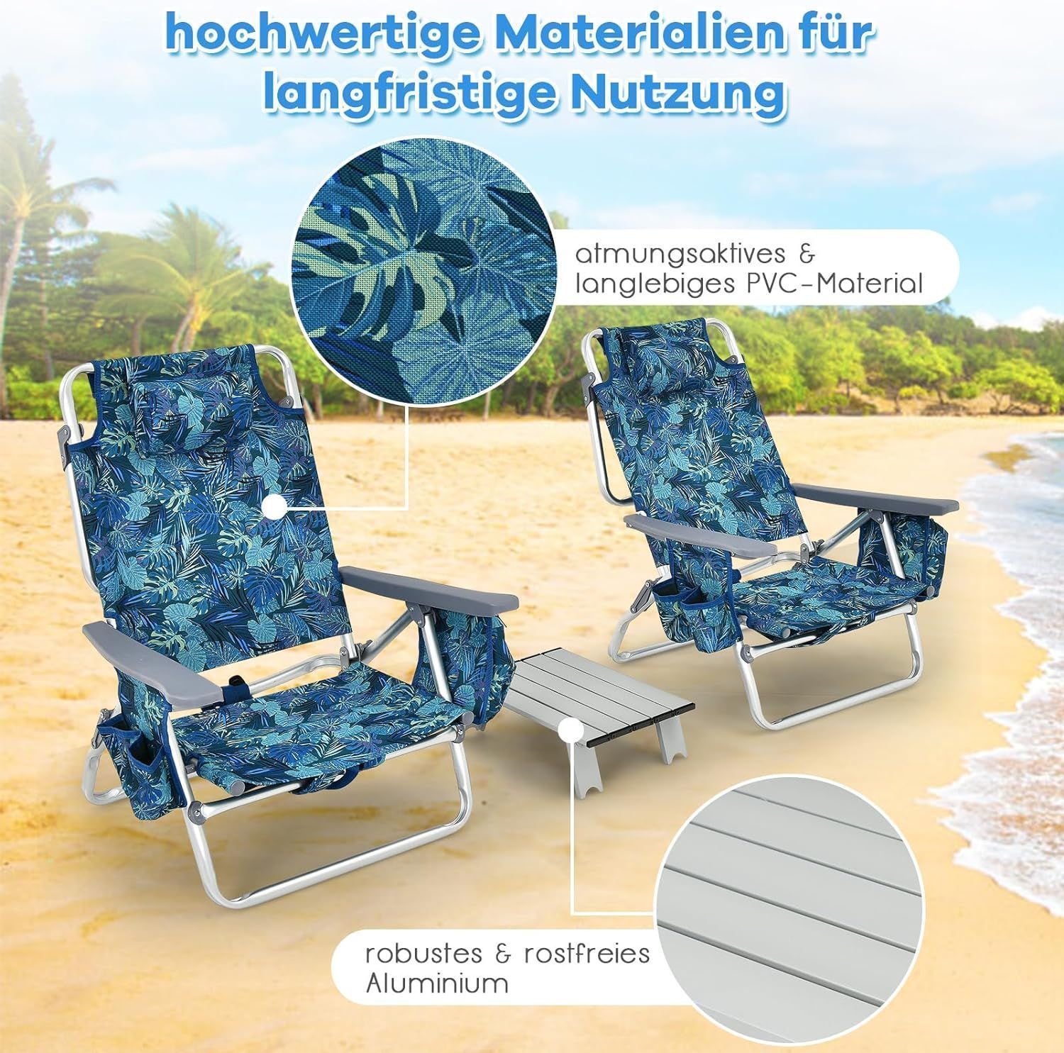 Strandstühle und Tisch Set, klappbare Campingstühle mit Verstellbarer Rückenlehne